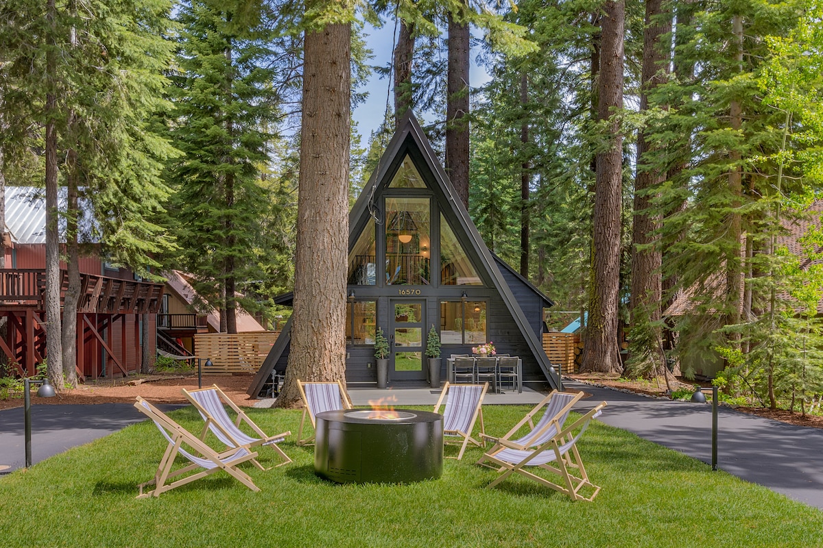 Indlu yamaplanga eyiDonner Lake A-frame ebonakala kakuhle