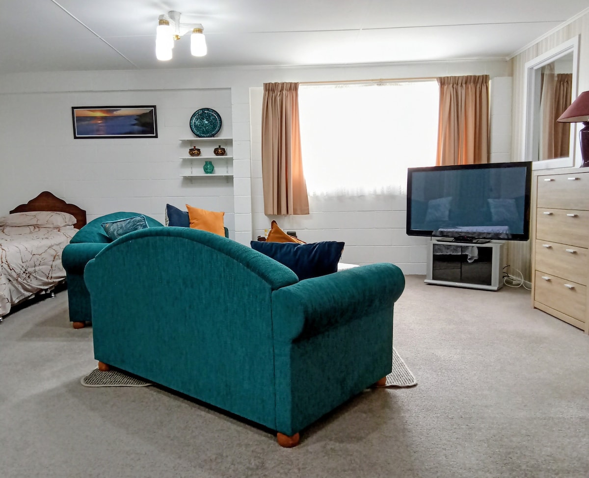 Ifumaneka kufutshane nendawo yokungena eManfeild, ephakathi kwepaki yeKitchener nepaki yaseKowhai. Yiza wonwabele i-portacom yethu etshintshiweyo enendawo yokupaka imoto esesitratweni phantsi kwemithi yasekuhlaleni. Le ndlu incinci inebhedi enkulu, igumbi lokuhlambela, i-air con, idekhi yakho, i-wifi, i-smart tv eneenkonzo zokudlala kwi-intanethi nekhitshi eline-microwave, i-jug, i-toaster, i-airfryer, umatshini wokuhlamba impahla, umatshini wokomisa impahla, umatshini wokomisa impahla nefriji/ifriji. Isidlo sakusasa neziselo ezishushu nazo zilindile. Sikhangele phambili ekubeni ngumbuki zindwendwe wakho :)