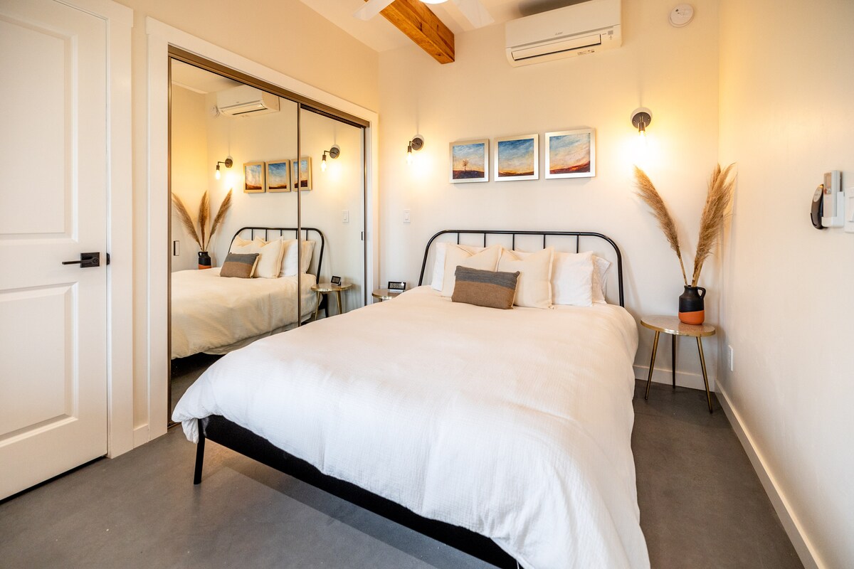 Sineflethi okanye indlu ekwicomplex enegumbi lokulala eliyi-1 elitofotofo ecaleni kwekhaya lethu. Yindawo yabucala enendawo yokungena engenasitshixo. Ifumaneka kumqolomba onendawo entle yasentshona, ukubuka isixeko saseRedding nokutshona kwelanga okuhle. Indawo iquka ikhitshi elincinci (elingenasitovu), izixhobo zombane ezincinci; indawo yokubraya neepani. Ibhedi etofotofo, iintloko ezimbini zeshawa. Kufuphi ne-I5, i-River Trail, i-Sun Dial, ibala legalufa, izibhedlele neevenkile zokutyela. Yindawo epholileyo yokuphumla nokuphumla. (Inqanaba 1 lokutshaja iEV =indawo yendlu eyi-120V ). *I-12% Yerhafu Yebhedi iqukiwe kwixabiso.