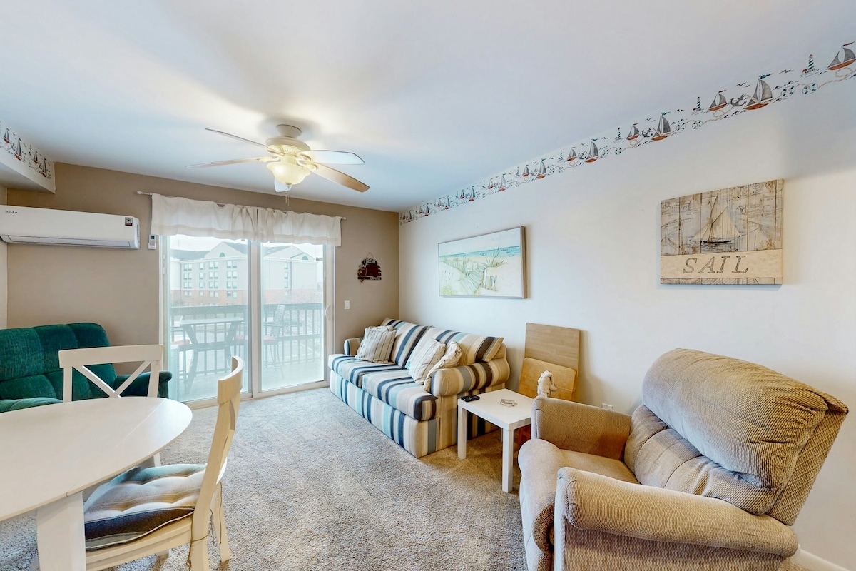 Iflethi entle engaselwandle ebonakala ngqo elwandle! Ikhaya lakho leholide elikude nekhaya! Yonke into oyidingayo elunxwemeni. Zonke izinto zebhedi, izinto zokucoca nekhitshi elinento yonke! I-New 65" TV w/free 4K Netflix! Ukuhonjiswa okuzolileyo kwale mihla embindini weOC! Uziva ngathi uyaphuma? Yonwabela ukuhamba ngeenyawo usiya eSeacrets, eMackey's naseFager's Island, kwiSubway, kwiCandy Kitchen okanye kwiDumsers 'Dairyland! Ukuzonwabisa okungakumbi? Hamba uye kwi-minigolf, kwizikhephe ze-pontoon nakwiindawo eziqeshisayo ze-jetski! Yimizuzu eyi-4 kuphela xa uhamba ngemoto usiya kwindawo yokuhamba ebhodini!!