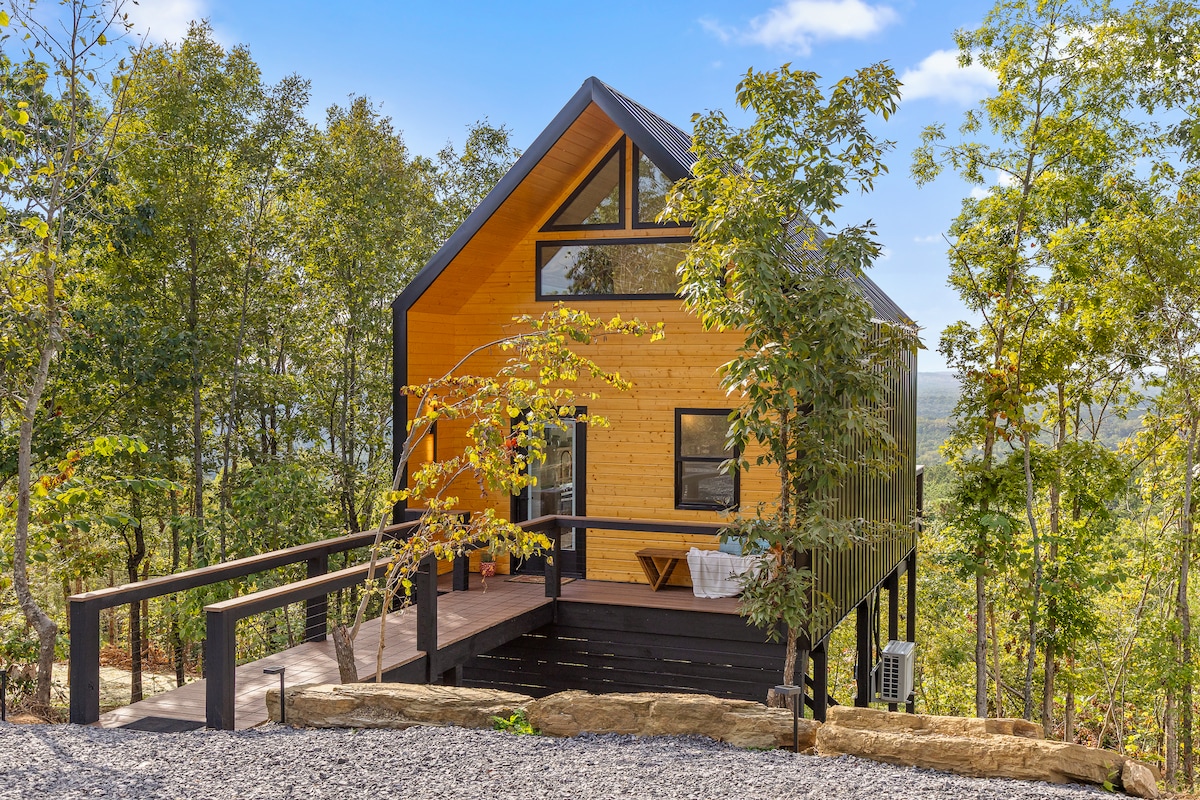Come and relax in the hot tub and enjoy the mountain views! Cozy, mountain-top cabin with a spacious open-air deck and covered porch. Fully stocked kitchen, comfy queen-sized bed with fluffy blankets and premium soft cotton sheets, 360°-rotating, oversized smart TV that can be enjoyed sitting on the comfy loveseat or cuddled up between the covers, that's the biggest decision you'll have. Full private shower and separate vanity. NOT PET FRIENDLY...