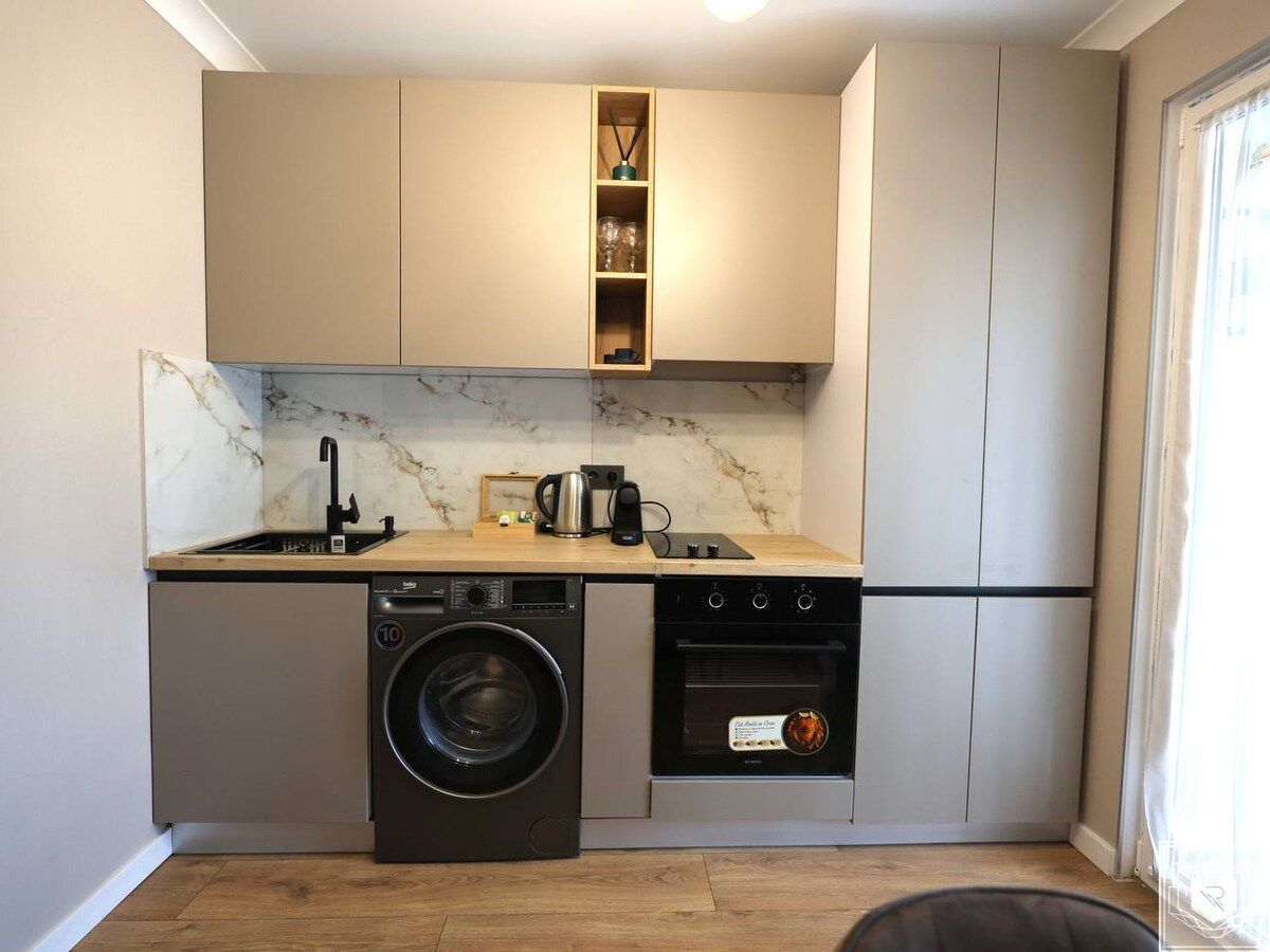 🥂 Wamkelekile kwiflethi yethu enegumbi lokulala eliyi-1 elikhuthazwa yiScandinavia kumbindi weChisinau. ✨Le ndawo itofotofo, incinci inendawo yokuhlala evulekileyo nefenitshala yale mihla. Indawo 🅿️ yokupaka yasimahla iyafumaneka ecaleni nangaphambi kwesakhiwo, nto leyo enqabileyo kakhulu embindini. 📺 Yonwabela ukuba lula komatshini wokuhlamba izitya, umatshini wokuhlamba iimpahla, umatshini wokomisa izitya, umatshini wokwenza ikofu, iTV, iWi-Fi, umatshini okhupha umoya obandayo okanye oshushu, nendawo yokugcina izinto eyaneleyo. 🎯 Ifumaneka embindini wesixeko, ikufuphi neevenkile zokutyela, iivenkile nezinto ezinika umdla.