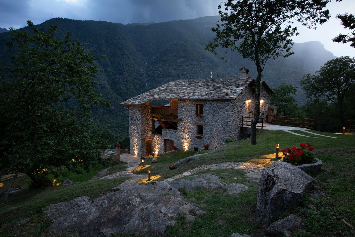 Inqugwala eliqhelekileyo elisezintabeni, elineendawo ezintle kakhulu, ezizimeleyo, elilungisiweyo ubukhulu becala liphinda lisebenzise izinto zokuqala. Ifumaneka eMartassina, kumasipala waseAla Di Stura, eweni elivumela ukubona intlambo ngendlela ekhethekileyo, izitepsi ezimbalwa ukusuka kwibhari nevenkile. Iibhedi eziyi-4. Ukuzola okuphezulu nokulula ukufikelela kuyo. Kukho i-terrace enkulu yabucala eneBBQ. Khangela "Baite del Baus" "Baita d' la cravia'" "Baita della meridiana" "Baita panoramica in borgo alpino"