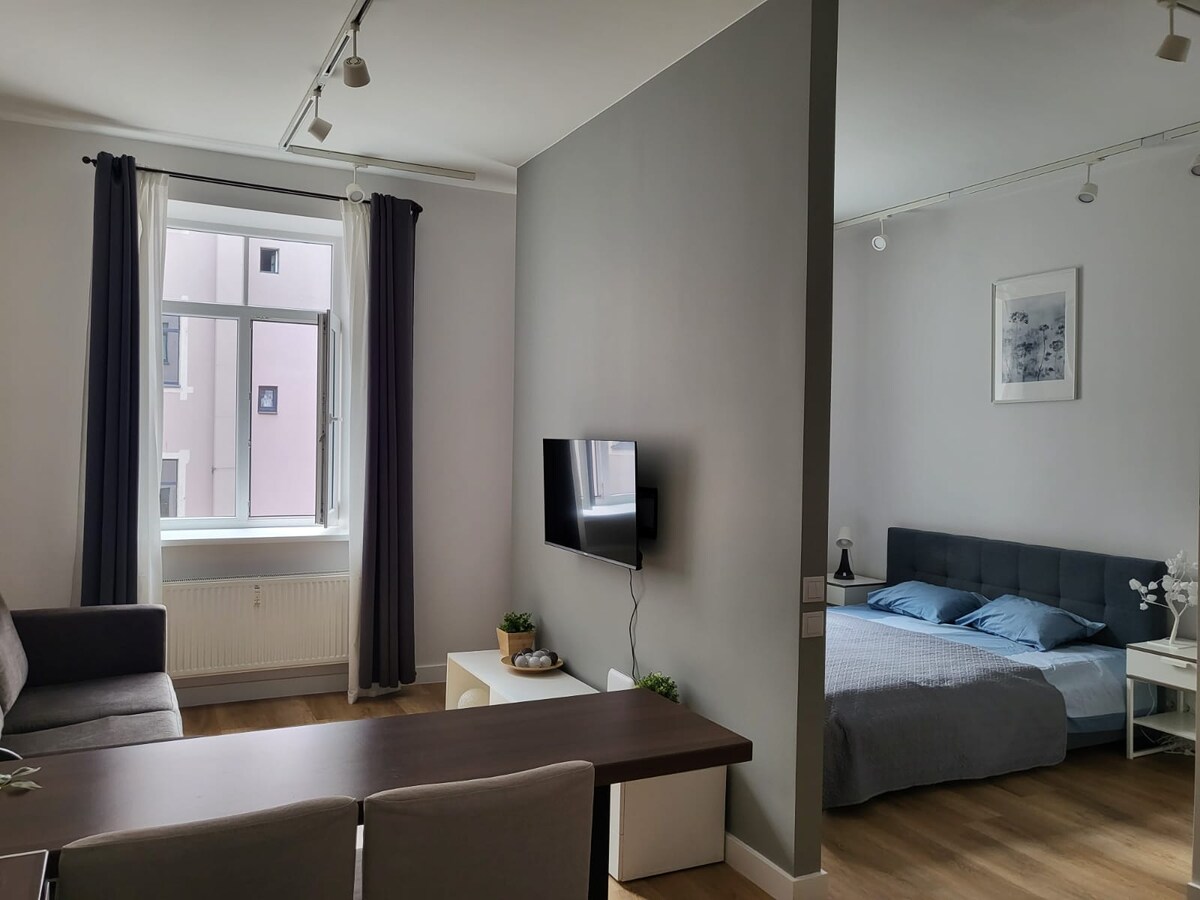 This apartment is ideally located in the historic centre of Riga, with views of the Old Town. It is close to restaurants, shops and all the main tourist attractions, making it easy to plan your visit. The cozy studio has a unique oval office and coffee machine for undisturbed work. The bedroom include a king-size bed and a TV corner for relaxation. Freshly renovated bathroom with washing machine and toiletry amenities are also available.