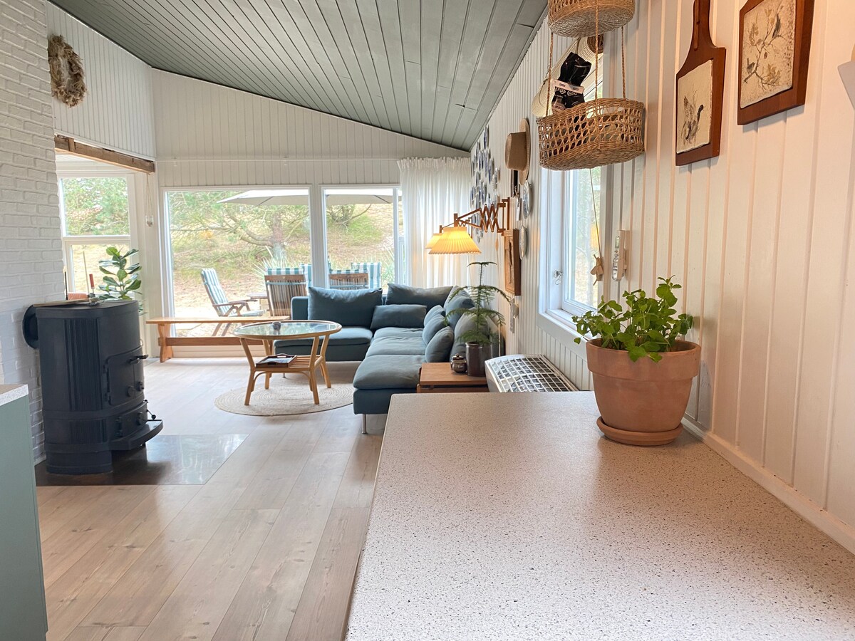 Ikhaya leholide elinophahla olukwisitayile saseFanø kunye nethala eligqunywe kancinci kunye negadi kunye nendawo yokuhlala kunye nesihlomelo. Le ndlu ikwindawo yendalo eneendawo ezahlukeneyo onokuhlala kuzo uze wonwabele indalo. I-Sønderho neSønderho Beach ikumgama wokuhamba ngeenyawo. Le ndlu inamagumbi okulala amabini, iloft negumbi losapho lasekhitshini elinendawo yokungena kwithala nekhitshi eliphandle elinendawo yokoja igesi. Ukuba uqhuba imoto yombane, unokubiza ngohlobo lwe-2 okanye ii-CEE ezidibeneyo kwindawo yokuhamba. Wamkelekile!