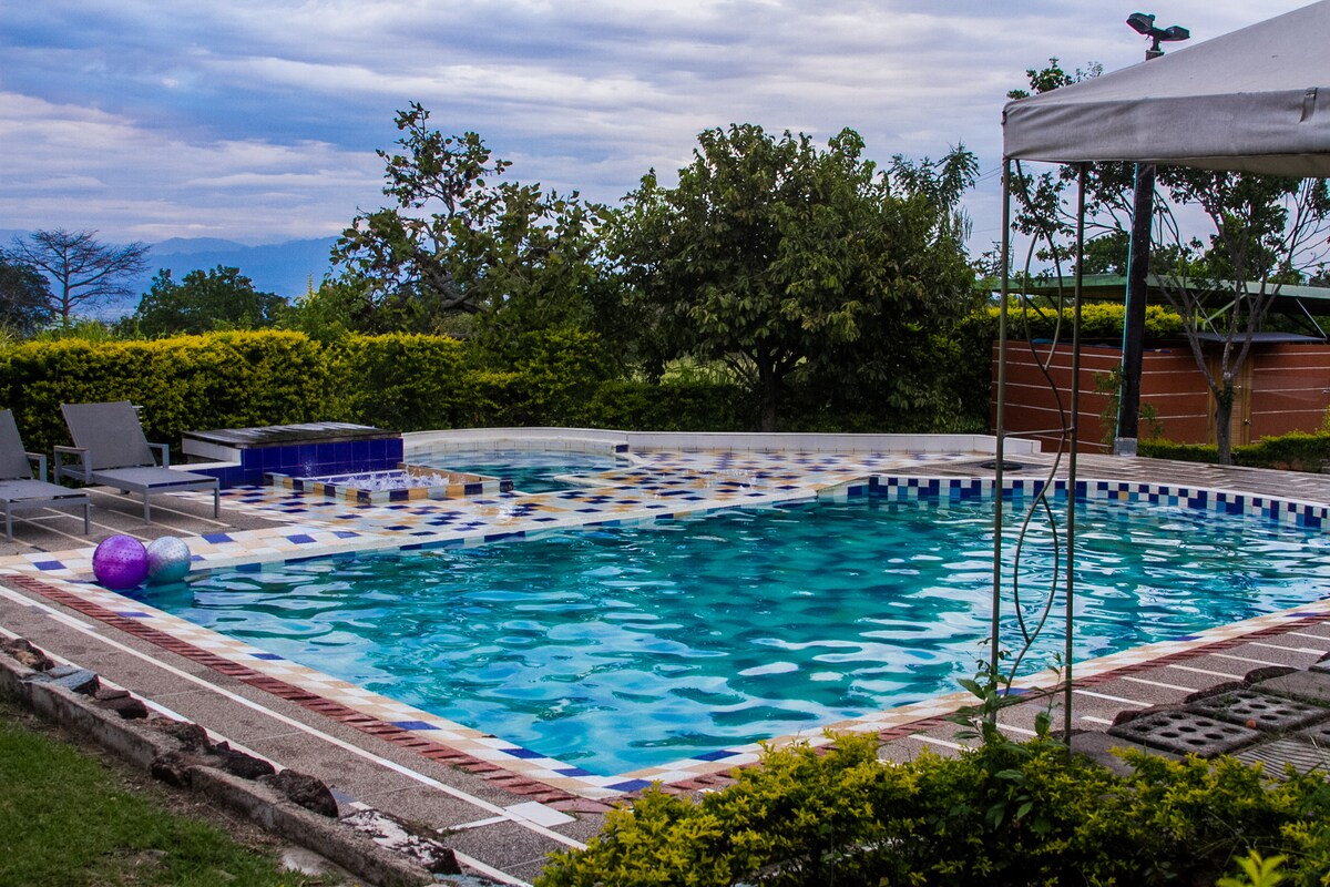 Phumla uze unqumamise eCasa de Campo Santa Clara, indawo ezolileyo ejikelezwe yindalo eRivera, eHuila. Indawo yethu yabucala yindawo efanelekileyo yamaqela eentsapho, abahlobo okanye iinkampani ezifuna ukuphumla, ukonwabela iindawo eziphandle ezivulekileyo nokwabelana ngamaxesha angalibalekiyo. Sinepuli ene-jacuzzi, indawo yokubraya, imidlalo yebhodi, ibala lezemidlalo, ibala lokudlala kunye nenkonzo ye-spa (ngokudibana). Ibekwe kwimizuzu nje eyi-5 ukusuka kwimithombo yamanzi ashushu.