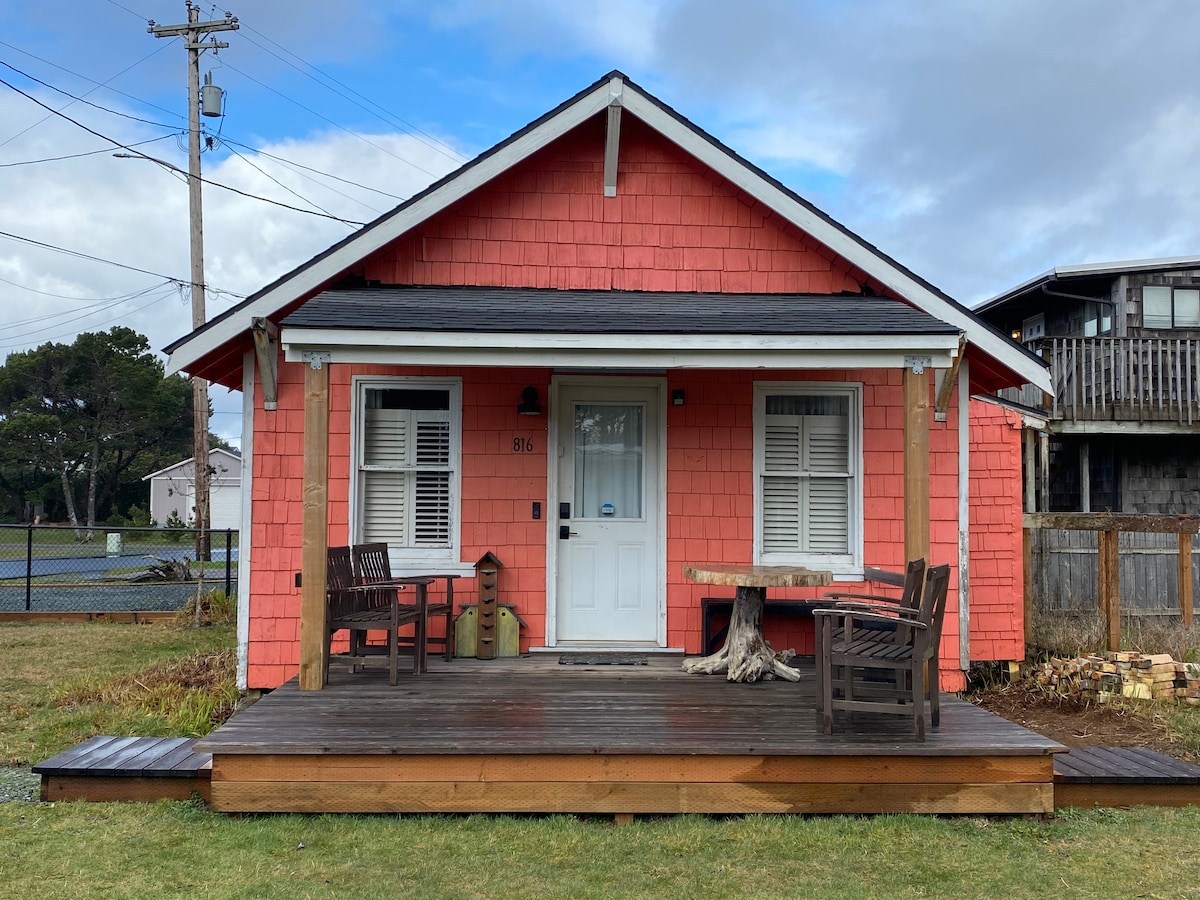 I-Hummingbird Cottage yindlu esemaphandleni yaselwandle yakudala ka-1930. Kuye kwaphumla kwentsapho yethu iminyaka eyi-40 kwaye ngoku siyakwamkela ukuba uzenzele iinkumbulo zakho kwenye yezona ndawo zintle kunxweme lwaseOregon! Indlu esemaphandleni ineekhilomitha eziyi-600 ezinegumbi lokulala elinye elinebhedi enkulu, igumbi lokuhlala eline-futon ephindwe kabini. Igumbi lokuhlala liyibona iNetarts Bay nePasifiki Ocean. Ikhitshi linezinto zombane zale mihla, umatshini wokwenza ikofu waseKuerig, "K- Cups" (ikofu), umatshini wokuhlamba nowokomisa impahla.
