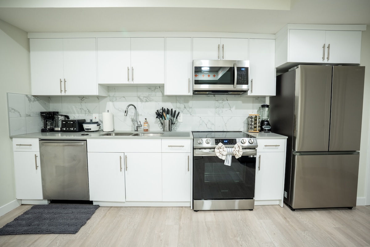 Igumbi elitsha elinomnyango ophumela ngaphandle eliseArbours of Keswick, ingingqi eseSW Edmonton, eAlberta eyasekwa ngo-2018. Igumbi lokulala linezixhobo ezitsha, ikhitshi, umatshini wokuhlamba nowokomisa impahla, ifriji, umgama, i-microwave, umatshini wokuhlamba izitya, iketile, iimbiza, izinto zokupheka, izinto zokusika nezitya. I-thermostat elawulwa nguwe ukuze ulawule amaqondo obushushu. Indawo yakho yokungena ene-smart lock. Ikofu eyongezelelekileyo neti ziyafumaneka. I-Netflix ne-Amazon Prime Ziyafumaneka. I-Wifi iyafumaneka. Indawo yokupaka esesitratweni iyafumaneka.