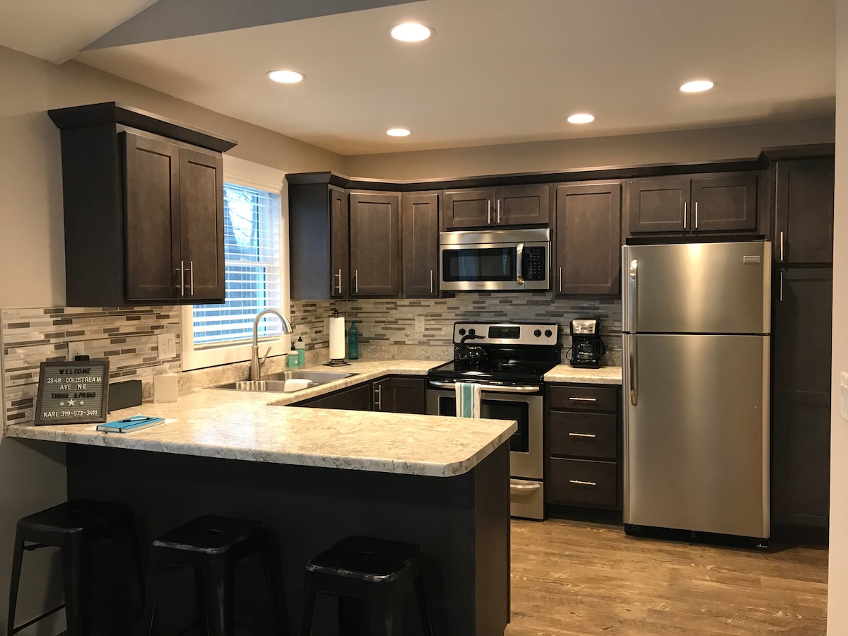 Zipholele kule holide ikhethekileyo nepholileyo. Ngekhitshi elipheleleyo, isofa etofotofo nebhedi enkulu, uza kuqiniseka ukuba uziva uzinzile, kungekudala. Phandle nje, yonwabela ukugcwalisa iteknoloji ephantsi uze ukhuphe ibhafu enamanzi ashushu engenazindlu kuyo nayiphi na imozulu! Ukungena kwindawo yokujima esetyenziswa nangabanye abantu kuyayigqiba. Kushiyeke nje imizuzu embalwa ukusuka edolophini iCedar Rapids, iCzech Village, iNewbo District, iKirkwood, kunye neInterstate 380. Kufuphi neetoni zeevenkile zokutyela ezintle nokuzonwabisa, zonke zikwindawo ethe cwaka nepholileyo.