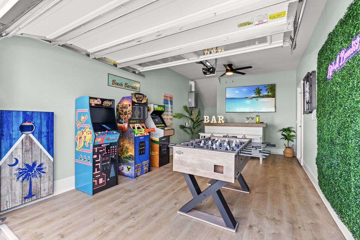 Par for the Shore is a modern 4-bedroom coastal home in North Myrtle Beach — where golf retreats and family beach vacations both come to win. New construction. Private heated pool. Included golf cart. Game room with pool table and neon glow. PS5 in the living room. Five minutes from the sand on foot, and minutes from some of the best courses on the Grand Strand. This isn't just a place to sleep between rounds and beach days — it's the home base your group will keep coming back to.