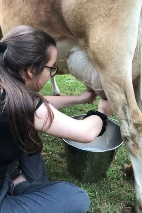 Learn the joy/relaxation of cow milkin