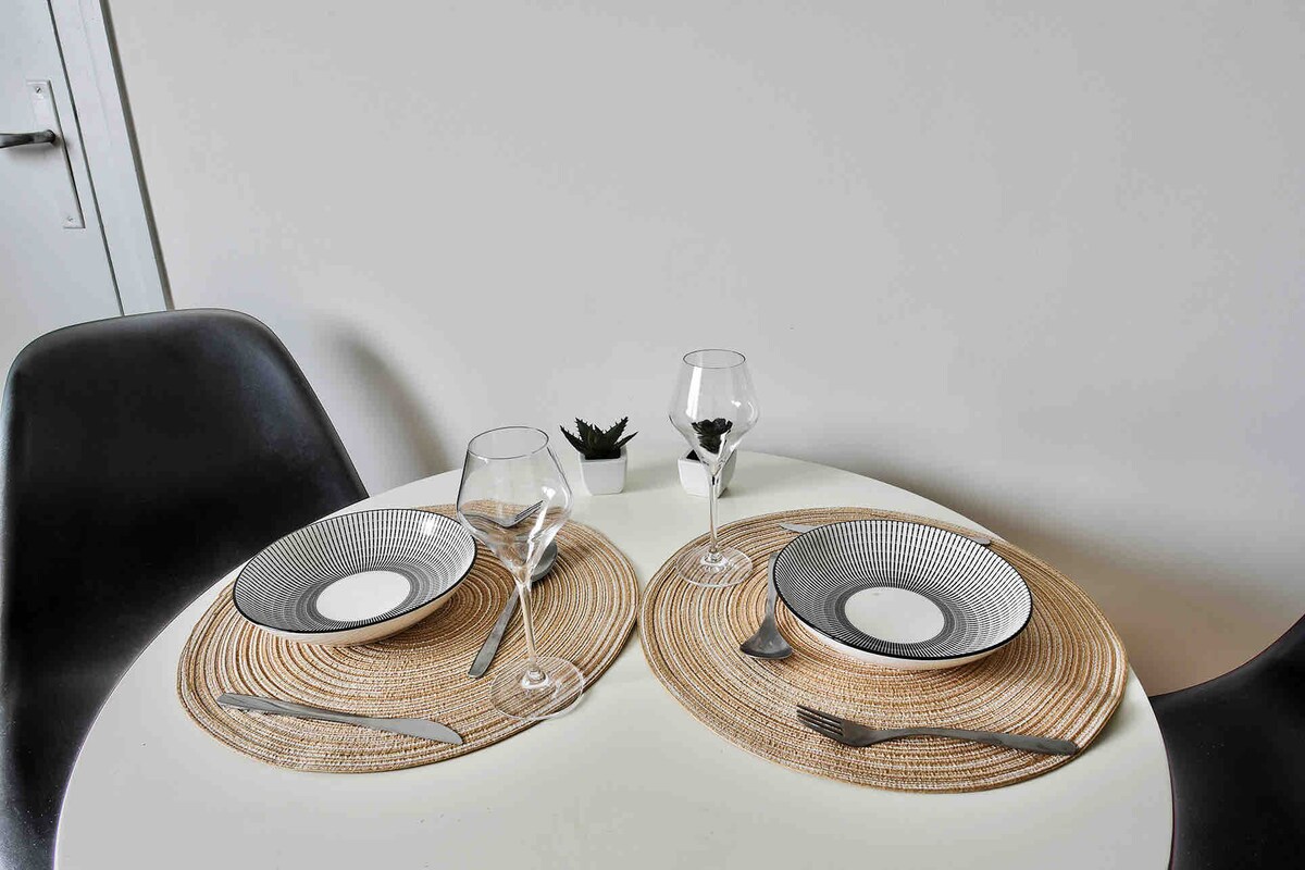 Le flethi ifumaneka kufutshane nombindi wesixeko saseBourg en Bresse kunye nesikhululo sikaloliwe. Ilungele naluphi na uhambo: ingcali, isibini, intsapho okanye abahlobo. Ukufikelela lula ukusuka kwisikhululo sikaloliwe (ukuhamba imizuzu eyi-5), okanye ngemoto (iindawo zokupaka ezingezantsi). Ukuze ufike embindini wesixeko (iivenkile, iivenkile zokutyela), kuthatha imizuzu embalwa uhamba ngeenyawo okanye ungalisebenzisa izithuthi zikawonke-wonke ezikufutshane. I-Wifi kunye ne-TV. Izilwanyana zasekhaya zamkelekile.