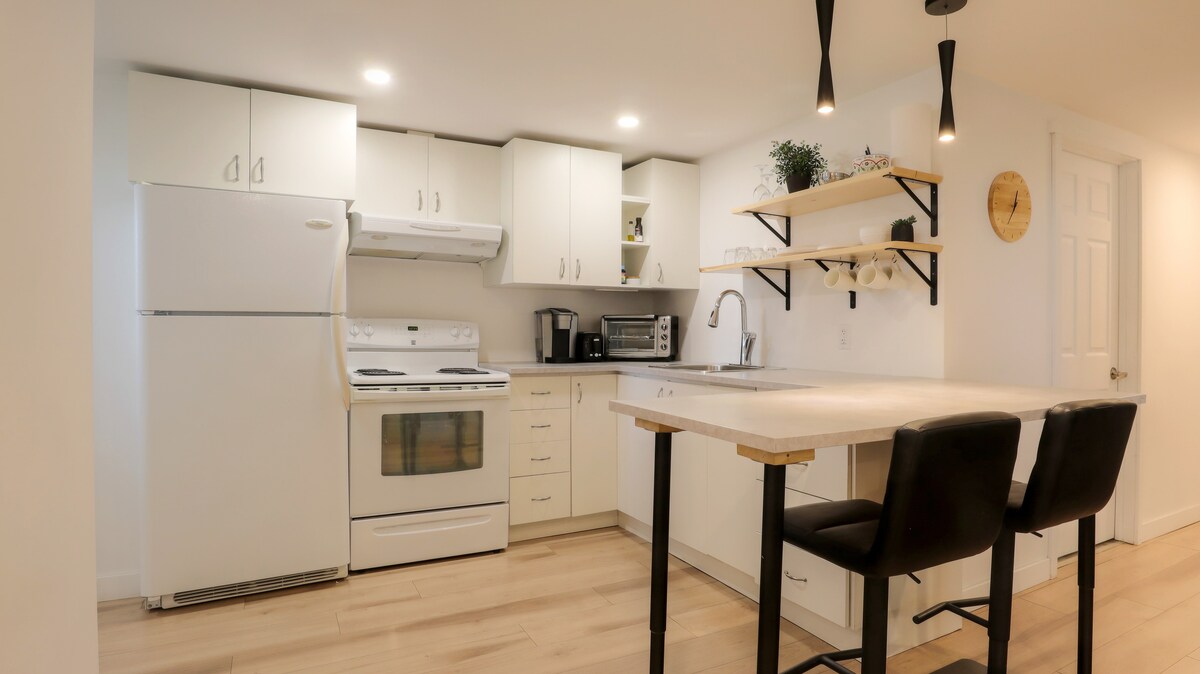 Ilungele ukuzikhupha kamnandi, indlu yethu engaphantsi inayo yonke into oyidingayo: ikhitshi elincinci elinezinto ezininzi, ibhedi enkulu etofotofo, isofa enomatrasi onokulala kuyo umntu omnye okanye ababini, igumbi lokuhlala elincinci kunye negumbi lokuhlambela elipheleleyo. Indawo yokupaka iyafumaneka kwimoto yakho. Ikwindawo entle, uza kube ukufutshane nento yonke: iivenkile zokutya, iivenkile zokutyela, iipaki, indlela enkulu, njl.