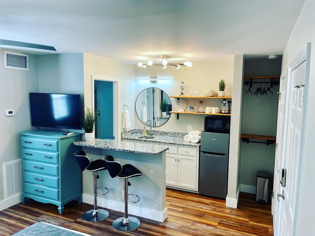 Wamkelekile kwikhaya lethu elihle lokulala eliyi-1/ 1bath elikude nekhaya! Ezi ndawo zokuhlala zinamagumbi amanyathelo nje ukusuka eSouthport Marina naphakathi kweMzantsiport enembali. Unendawo yokupaka izikhephe, indawo ephandle yepuli, kunye nokufikelela kwiindawo ezininzi zaseSouthport, ezifana nokutya okumnandi nokuthenga. Iibhayisekile nezitulo zaselwandle zikwindawo yokupaka egqunyiweyo. Ukuphola kwakho kuqala ngokuzingenela okulula nokungena ngaphandle kwesitshixo! Uhlale kamnandi.