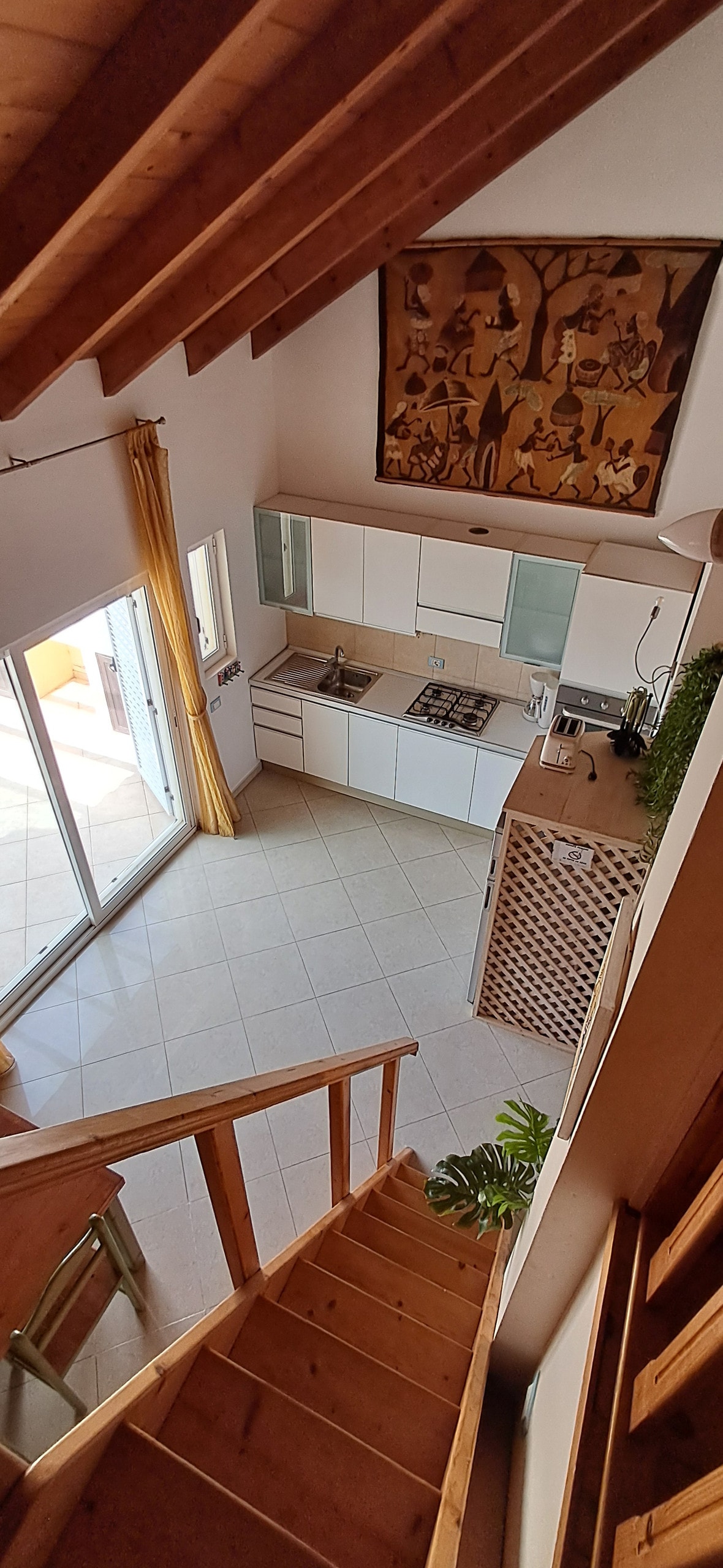 Iflethi enkulu enamagumbi okulala ayi-2 enophahla lwabucala, kumgangatho wesithathu kwisitrato esithuleyo nesiqhelekileyo embindini weSanta Maria. Ifumaneka kumzuzu oyi-1 uhamba ngeenyawo ukusuka kwisitrato sabantu abahamba ngeenyawo nemizuzu eyi-4 ukusuka elwandle, uza kuncedwa yindawo entle oza kuhlala kuyo. Umphezulu wophahla ubonisa iindawo ezintle zedolophana yaseSanta Maria, isiqithi saseSal nokutshona kwelanga okumangalisayo. Iivenkile neevenkile zokutyela ezinyaweni zesakhiwo. Le flethi iyawela ibe iyanceda xa kungeniswa umoya.