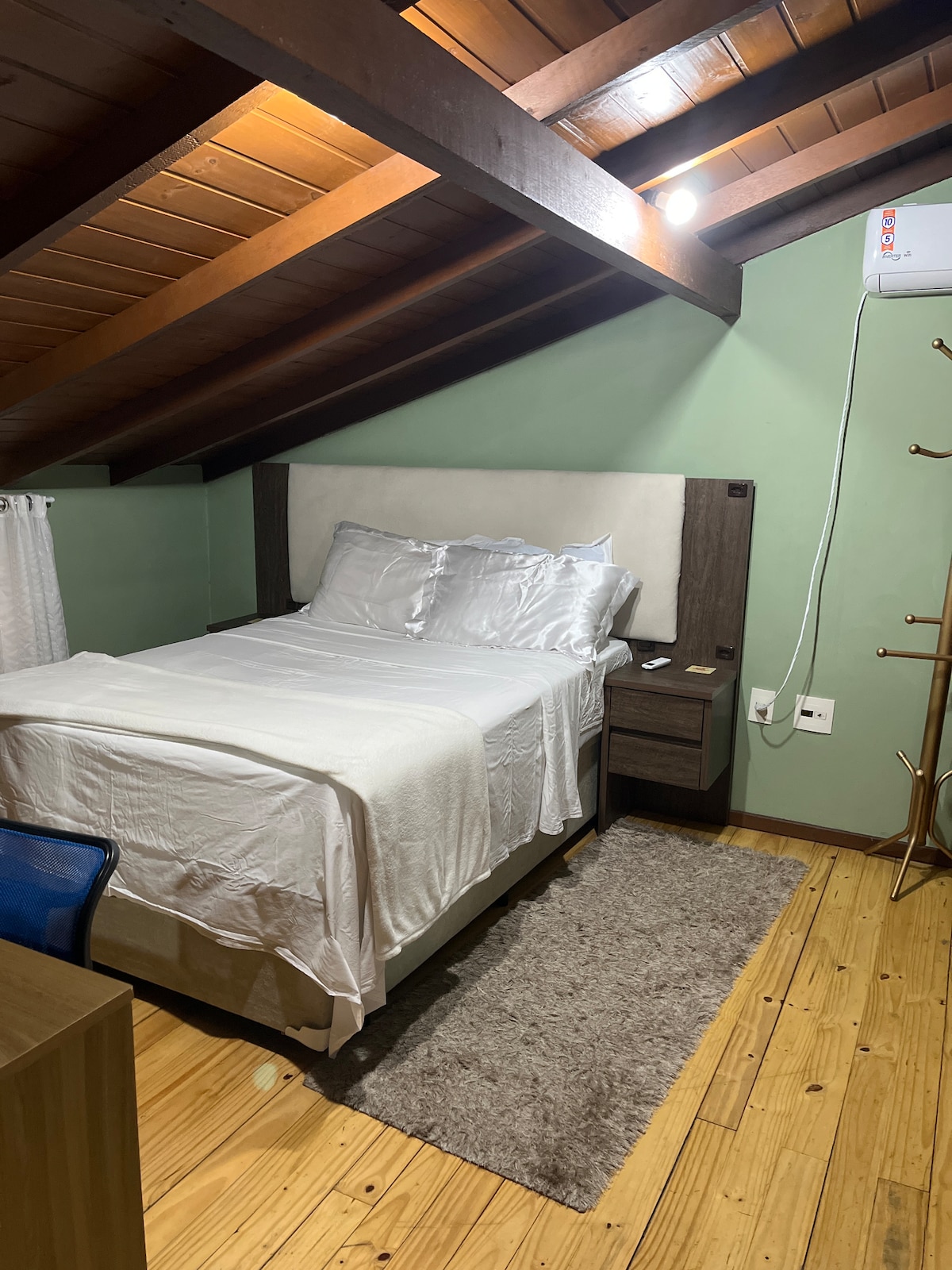 Iflethi okanye indlu ekwicomplex ekwindawo ebiyelweyo enomnyango wokhuseleko iiyure eziyi-24, indawo yegaraji egqunyiweyo. Indawo ethe cwaka kakhulu ene-Supermarket, ikhemesti, isikhululo segesi, iivenkile zokuthenga i-fishmonger kunye nokufikelela lula kwi-Br101, kunye nokuphuma kwiilwandle zaseFlorianópolis,Gov.Celso Ramos kunye neGaropaba. Sine-Smart TV, kunye ne-Netflix, i-air-conditioning eshushu kunye neshawa entle yokuhlamba. I-Praia do Rosa 70 km, uJoaquina 20 km, iziko lembali laseFlorianópolis 8 km.