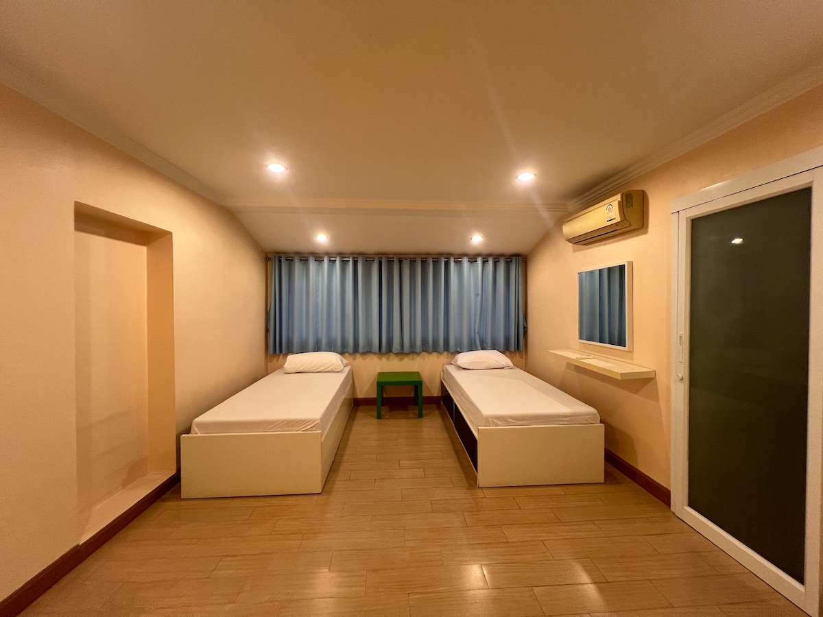Le ndlu ikwicala elisemazantsi ePattaya Jomtien Beach, ukuba udinga indawo yokuhlala ethe cwaka, le ndawo ifaneleke ngakumbi, kukho ivenkile ekulula ukuyisebenzisa eyi-711 ecaleni kwendlu enendawo yokuphola, iimitha eziyi-50 ngqo elwandle, imizuzu eyi-8 yokuhamba ngeenyawo ukuya kwivenkile yokutyela edumileyo yaseThailand, igumbi ngalinye lokulala likhulu elinegumbi lokuhlambela elikhethekileyo, intsapho inokuhlala ifaneleke ngakumbi, kwaye kunokwenzeka ukuba ube nepati apha, indawo yokubraya