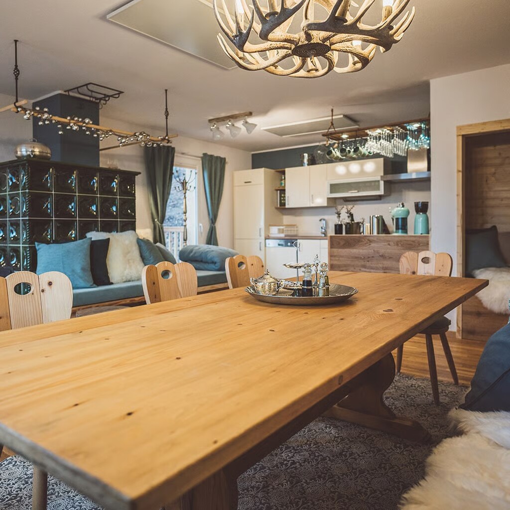 Willkommen im Penthouse GIPFEL-GLÜCK. Die Krönung der Sunleitn-Residenz: 107 m² mit offenem Wohn-/Essbereich und beeindruckendem Sichtdachstuhl. Voll ausgestattete Küche und Zugang zur großzügigen Terrasse mit 180° Bergpanorama in absoluter Privatsphäre. Entspanne in der privaten finnischen Altholzsauna mit Blick in die Berge. 2 Schlafzimmer, ideal für bis zu 4 Gäste.