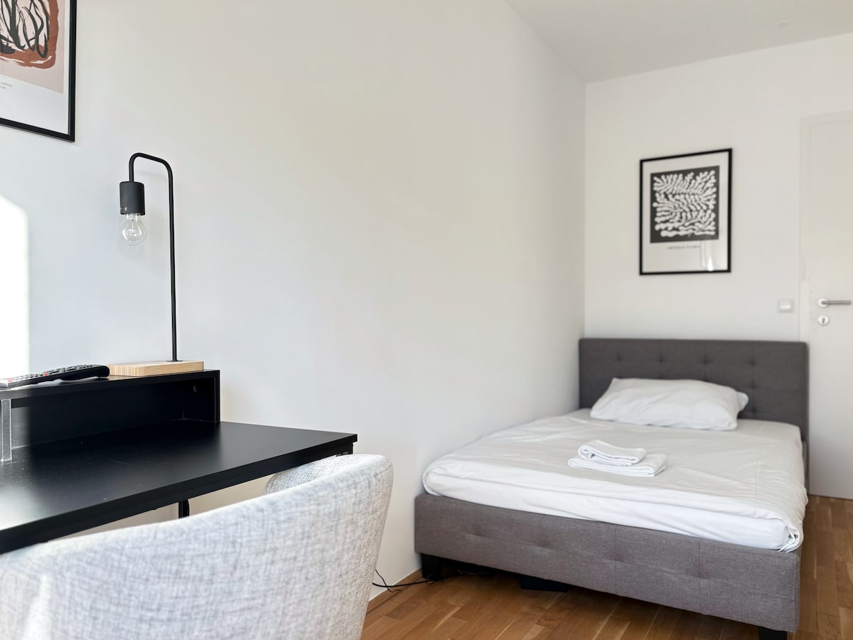 Iflethi okanye indlu ekwicomplex ekwistudiyo eVienna Liesing – Ilungele abantu abatshatileyo nabahambi bezoshishino Wamkelekile kwiflethi yethu ekhanyayo netofotofo, elungele abantu abayi-1 ukuya kwabayi-2. Enoba ukhangela indawo yokwexeshana okanye indawo ezolileyo yokusebenzela, iflethi yethu ekwicomplex inezinto ezinokusetyenziswa ezikumgangatho ophezulu nendawo entle. Imizobo yasekuqaleni yestudiyo sethu yenza le ndlu ibe nomtsalane ibe iindwendwe ezithanda ubugcisa zinokuya kwistudiyo esikufutshane xa ziceliwe.