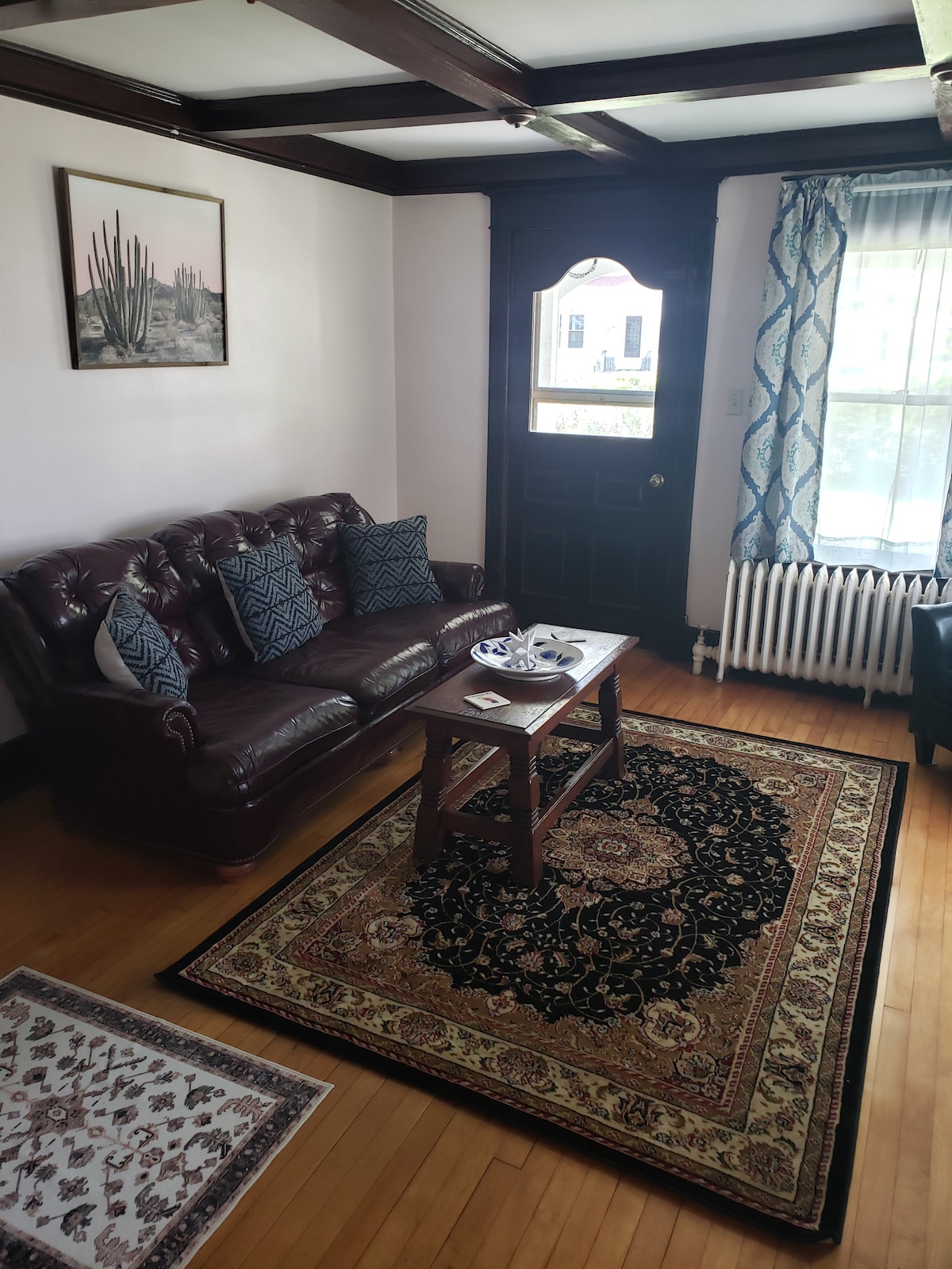 Yiza uphumle kwiflethi yethu yabucala, etofotofo nekumgangatho wesithathu. Indawo yethu yobukoloniyali eyi-1908 ikwi-Union St eSchenectady. Ndihlala kwiflethi ekumgangatho wokuqala ngoko ndikhona ukuze ndincede ngayo nantoni na. Igumbi lokulala linebhedi enegwebu elipheleleyo. Kukho ifuton epheleleyo kwigumbi lokuhlala. Indawo enye yokupaka yeendwendwe. Izilwanyana zasekhaya azivumelekanga. Ngenxa yokuguliswa zizinto ezithile, sinemvume yokukhululwa kwizilwanyana ezincedayo ezivumelekileyo kule ndlu. Khangela "ipolisi yezinto ezinceda ilungele wonke umntu" ukuze ufumane inkcazelo engakumbi.