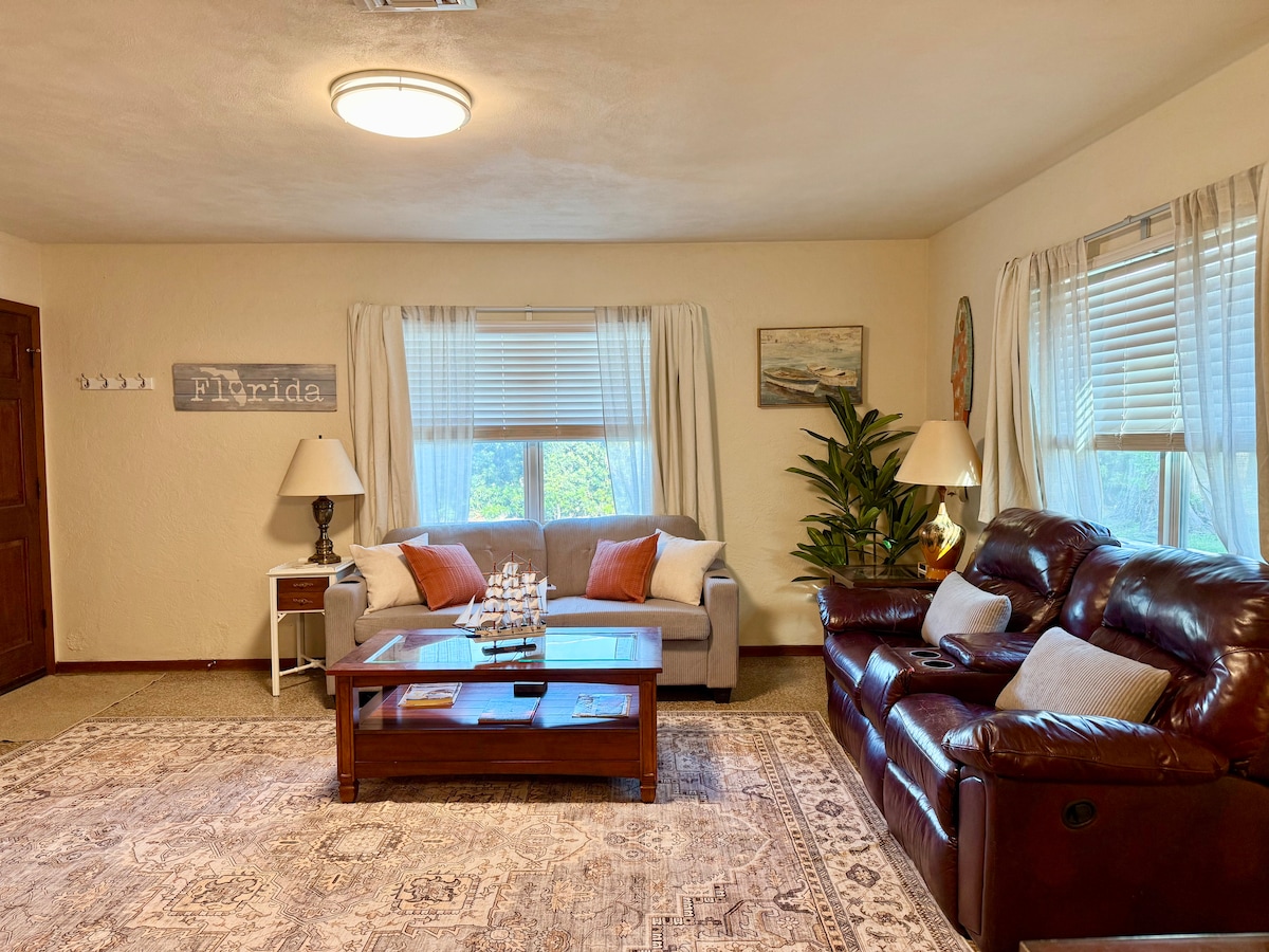 Le ndlu iyi-2/1.5 iyimfihlo, icocekile ibe itofotofo. Ikhitshi elivulekileyo linezinto zombane zentsimbi kwaye libonelela ngazo zonke iimpahla zokupheka eziyimfuneko. Indawo yokutyela evulekileyo/igumbi lokuhlala ifumana izibane zelanga ezaneleyo kwiifestile zeefoto. Yonwabela indawo entle yegalufa ngoxa uhleli etafileni yokutyela kunye/okanye kumgangatho ongaphandle. Kukho indawo yokutyela ephandle nendawo yokoja emgangathweni. Le ndlu iphakathi kwemizuzu eyi-45 ukusuka kwiipaki zomxholo (Disney & Universal) kunye namanxweme (Daytona/New Smyrna).