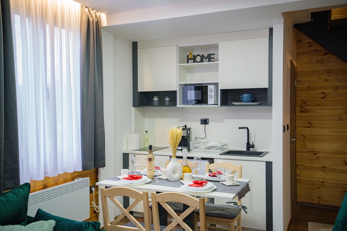 Fumana umlingo wendlu yethu yeholide eyakhiwe ngamaplanga enemigangatho emibini, ehlala kumahlathi amangalisayo eepine eZlatar Mountains. Le ndawo ayinikezeli nje kuphela ngeendawo ezintle zendalo engonakaliswanga, kodwa ikwayindawo yokuphumla elungele indalo exhaswa ngumbane welanga ngokupheleleyo. Enoba ukhangela iholide yothando, ikhefu lentsapho okanye ukuphumla nje kumsebenzi ophithizelayo wobomi, indlu yethu yeholide eyakhiwe ngamaplanga yindawo efanelekileyo yeholide engalibalekiyo nephumlayo.