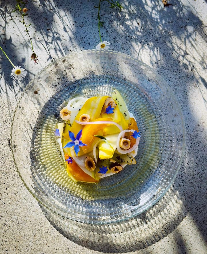 Uhambo olunelanga kwiindawo ezine ezimnandi. Indawo, indawo yokungena entsha, isidlo esinobubele, nobumnandi obumnandi.