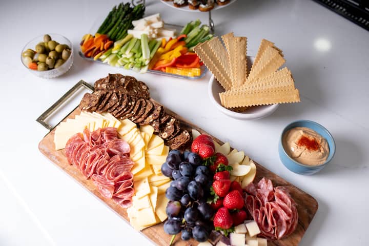 Yothusa iindwendwe zakho ngetafile yokutya ehonjiswe kakuhle eyenziwe ngumpheki oyingcali. Le nkonzo engenaxhala iquka ukulungiswa ngokupheleleyo nezinto zokusebenza ezilahlwayo, ukuze ukwazi ukuphumla uze wonwabe. Oko uza kukufumana: ukutya okuninzi, okulungiswe kakuhle okuneentlobo ezininzi ze-canapé, inyama ekhutshwe kwi-premium, iitshizi ze-gourmet, iicracker ezenziwe ngobugcisa, iidiphu ezenziwe ekhaya, i-crudité entsha yexesha, kunye needizethi ezenziwe ngesandla. Into entle eyenzelwe ukwenza umbhiyozo wakho ube ngcono.