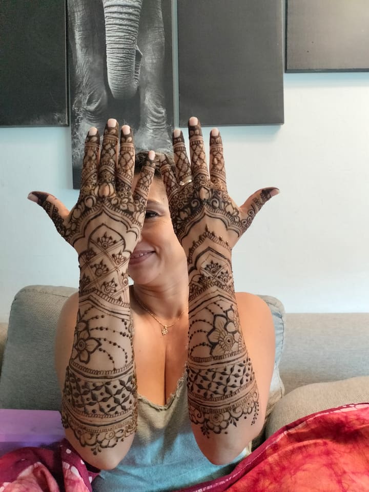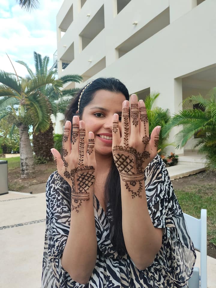 Ngaphezulu kweminyaka emi-5 ndiye ndazikhethela ukwenza iindlela zokuhombisa nge-henna yemveli, ikakhulu kwimitshato yamaIndiya, ndisebenzisana neenkampani ezibalulekileyo kwishishini lokuhombisa eMexico