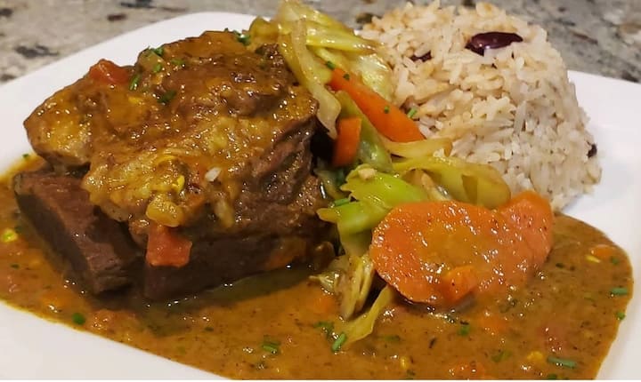 I-Oxtail Ephekiweyo, I-Jerk Chicken, I-Coconut Rundown (Inkukhu okanye I-Shrimp) okanye