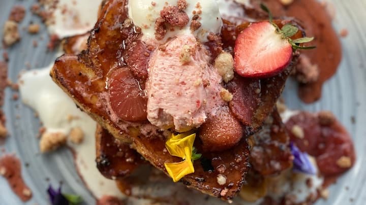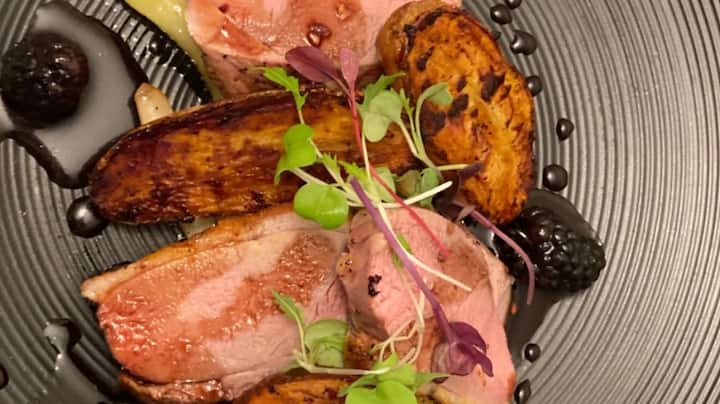 Yonwabela ukukhetha izimuncumuncu ezimnandi zaseFransi kuquka i-shrimp crostini ne-wild mushroom tartlette. Yonwabela isidlo esikhulu esiyibhontsi elungisiweyo enesosi ye-cherry sorghum gastrique neetapile ezosiweyo. Gqibezela ngokukhetha kwakho i-cheese course okanye i-red velvet crème brûlée.