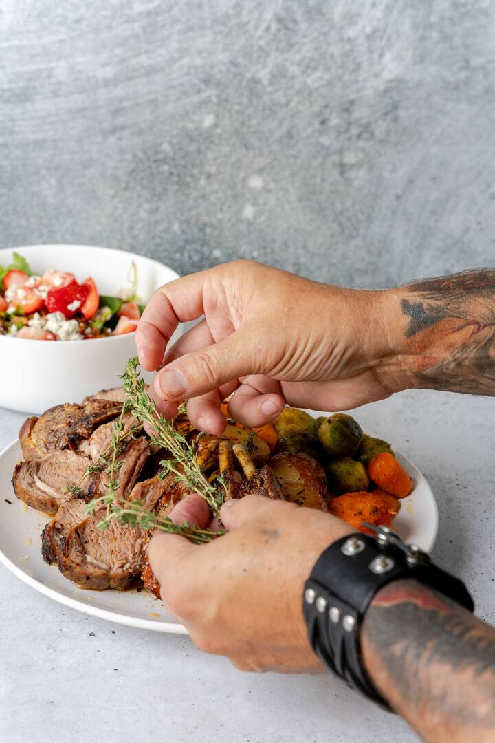 Yonwabela inyama ekhethiweyo ephekwe kumntu otshayayo okanye kwindawo yokosa, njengehagu etsalwayo, iimbambo ezingasemva, iimbambo zaseSt. Louis, i-brisket, nokunye. Amacala anokuquka iibhiskithi zobisi lwe-buttermilk, isonka sobusi saseMzantsi, nezinye izinto eziqhelekileyo.