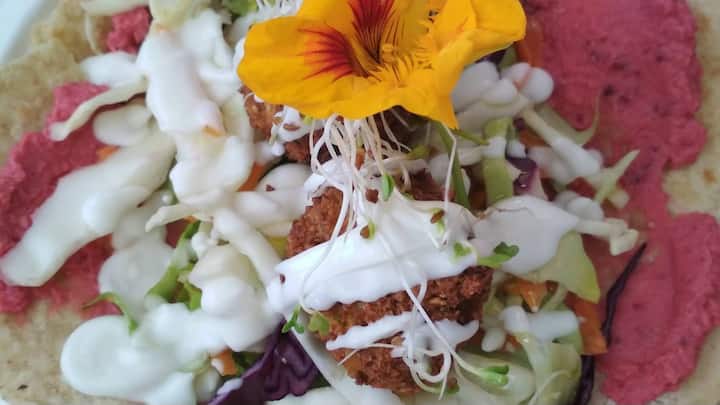 Yonwabela ukudityaniswa okukhethekileyo kweencasa zaseAsia nezaseAndalusia ngezinto zokuqalisa ezahlukeneyo ezifana nezinto zokutya zejack fruit neefritters zered lentil, izinto zokuqala ezifana neemomos neesamosas, isidlo esikhulu esinepotato emhlophe esosiweyo enesaladi netshizi yemifuno, kunye needizethi ezimnandi ezifana nechocolate crepe nepayi yepumpkin.