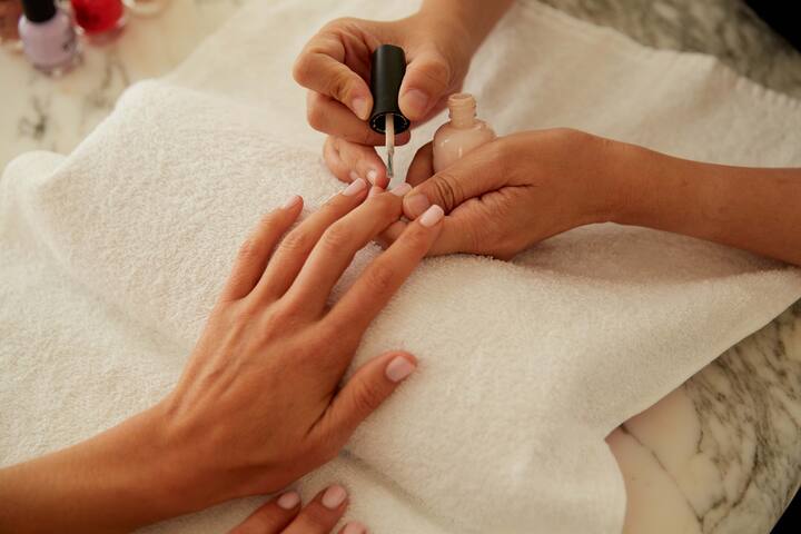 I-manicure ne-pedicure yejeli yobungcali epheleleyo equka ukukhathalelwa kwe-cuticle, ukulungiswa, ukubhufa, ukukhutshwa kwexfoliation ne-callus, egqityezelwa ngejeli polishi yokukhetha kwakho ehlala ixesha elide. Zilungele iiholide, imitshato okanye ukunxitywa ixesha elide ngaphandle kokuguga. Ihanjiswe ngamachule eenzipho.