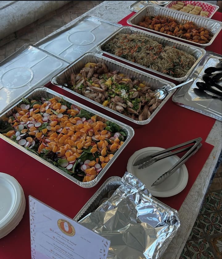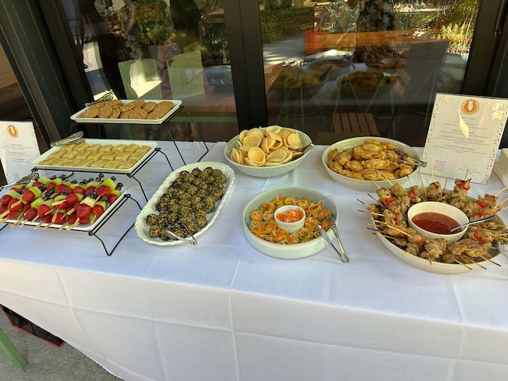Indlela entle yokuba nexesha lokudibana elilula, elingenaxhala, le pakethi iquka ukutya okune-carb okuyi-1, izinto ezityiwa ecaleni eziyi-2, ukutya okuneprotheni okuyi-2, kunye nento yokutya kamva eyi-1. Khetha kwizinto ezininzi ezingenagluten nezifanele abantu abatya imifuno kuphela onokuzidibanisa. Zonke izitya ziziswa kwiitreyi okanye kwizikhongozeli ezilahlwayo. Amacephe, amapleyiti namaphepha okosula umlomo eplastiki ayafumaneka xa eceliwe.