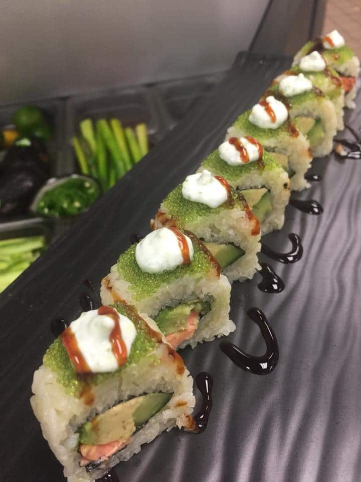 Umthengi angakhetha kwiindidi ezahlukeneyo zee-roll. I-California, i-Spicy Tuna, i-Rainbow, i-Philadelphia Roll, i-Veggie Roll. Ikhatshwa yisaladi yamachiza aselwandle, iwasabi, ijinja enongiweyo, nesosi yesoya.