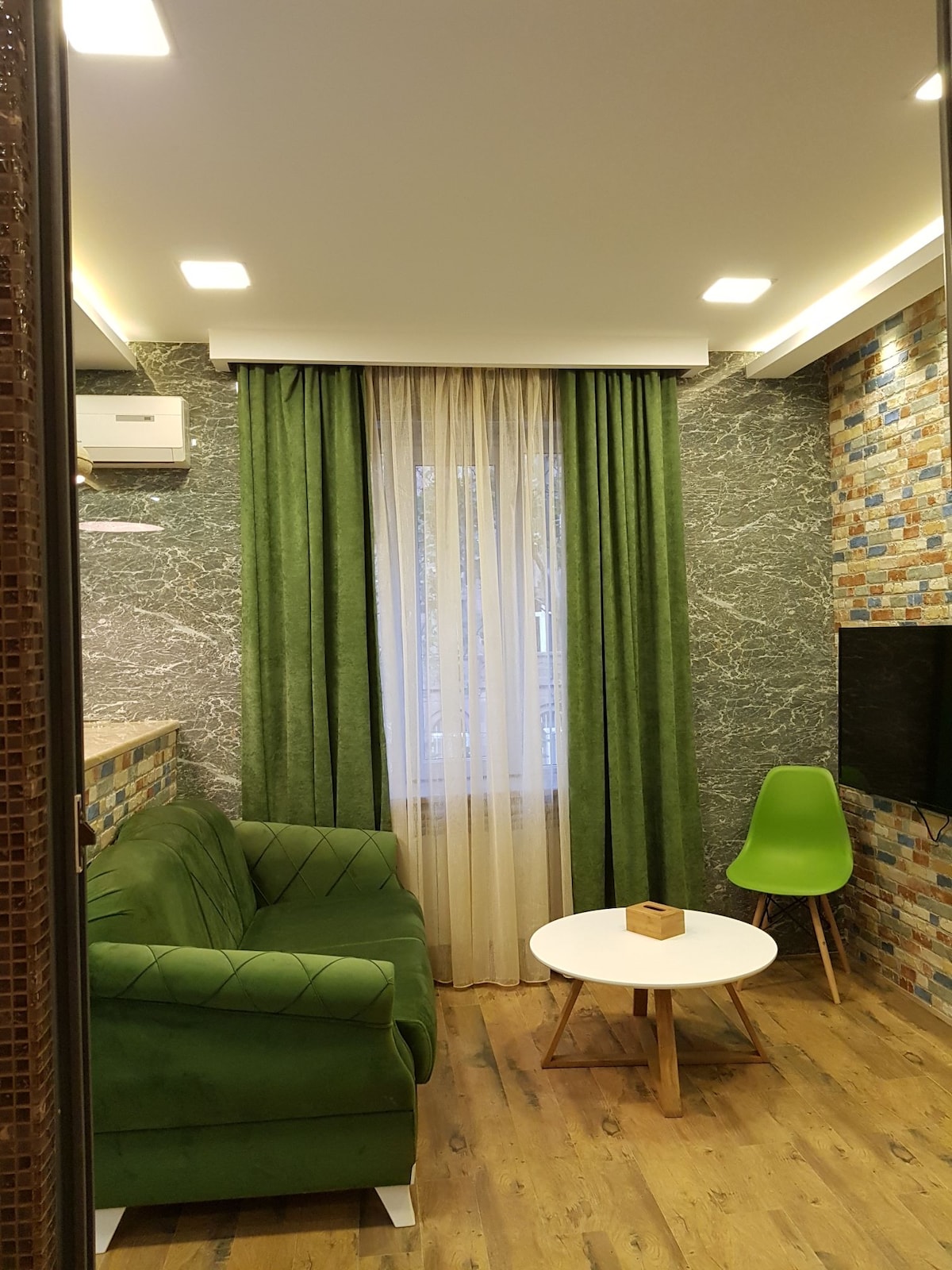 Iflethi isembindini weYerevan kuMntla avenue ,akunakwenzeka ukuba ucinge ngendawo engcono yabakhenkethi. Zininzi iikhefi, iivenkile zokutyela kunye neevenkile ezikufutshane. I-Riphabliki Square kunye ne-Opera House zihamba ngemizuzu emibini. Iflethi inendawo yokungena eyahlukileyo ukusuka eyadini kunye nendawo yokupaka. Ukulungiswa kolutsha ngendlela efudumeleyo.