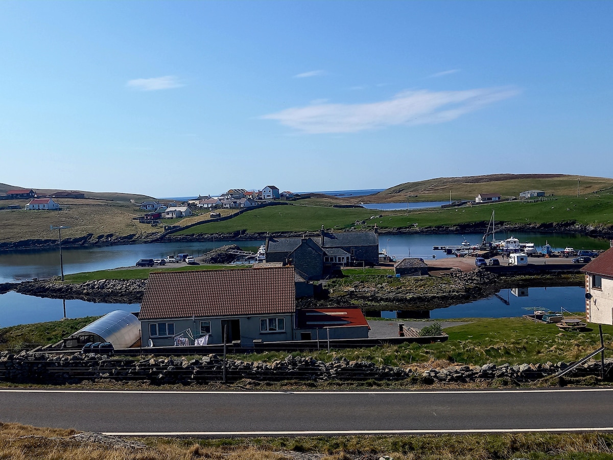 Wamkelekile kumgangatho wakho ophezulu, iholide enamagumbi okulala ayi-2 ekwindawo entle, ethe cwaka yedolophu ejonge eLerwick. Imizuzu eyi-2 xa uhamba ngeenyawo usiya kwindawo yokumisa ibhasi okanye imizuzu eyi-5 xa uhamba ngemoto iza kukusa embindini wedolophu. Le ndawo ikhethekileyo inegumbi lokuhlambela, igumbi lesidlo sakusasa elinesinki/iketile/i-toaster/ifriji ukuze ulungiselele isidlo sakusasa okanye ukutya okulula. Igumbi lokulala elikhulu liquka ibhedi yesofa enganyanzelekanga ukuze ubhetyebhetye ngakumbi. Ilungele ukuphumla emva kosuku ubuka iShetland.