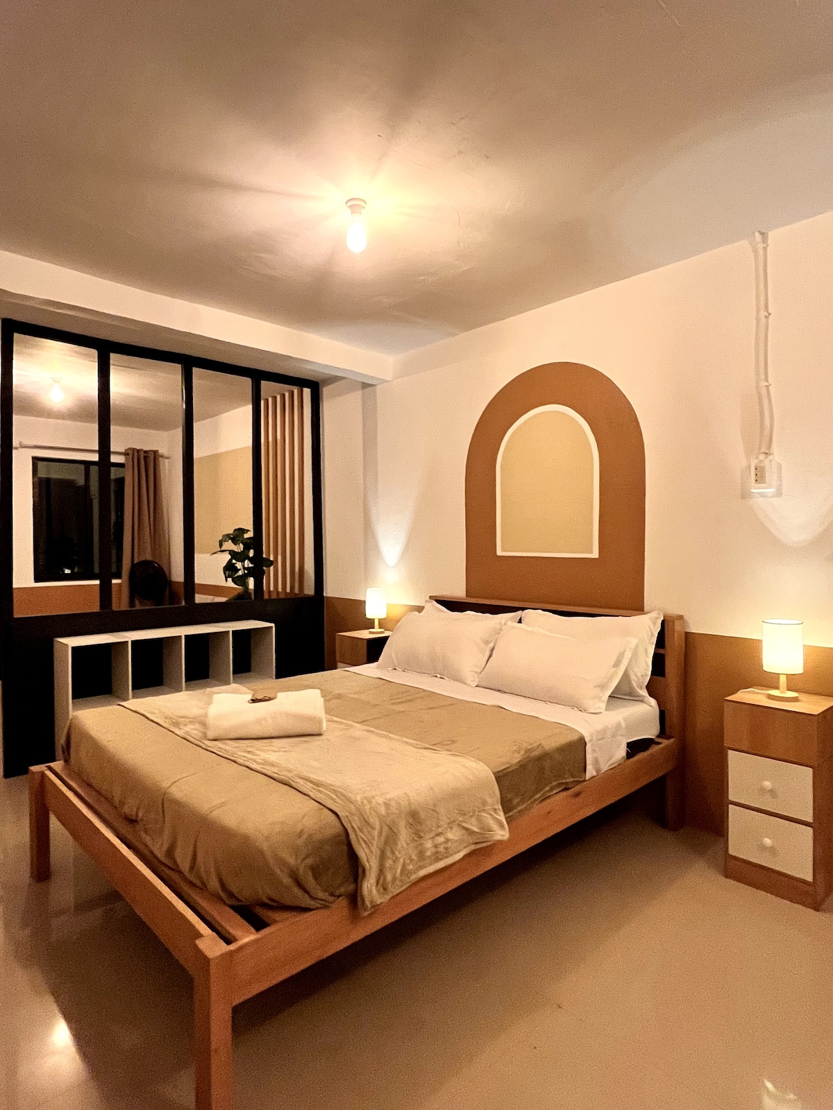 Wamkelekile kwiiflethi okanye izindlu ezikwicomplex zaseSiargao. Ihonjiswe kakuhle, yale mihla ibe isembindini weGeneral Luna. Ii-loft zethu zineminyango yeglasi ephakamileyo yeemitha eziyi-5 ukuze kubekho ukukhanya kwendalo okwaneleyo, iikhethini ezizenzekelayo zemiqamelo yomthunzi neyememori kunye nomatrasi wamathambo kumqhaphu waseYiputa! Sikwasebenzisa ilanga amaxesha amaninzi sisebenzisa iibhetri nejenereyitha yokucima umbane, ii-AVR ukuze sikhusele zonke izixhobo zakho ekutshintsheni kombane, i-Starlink. I-Cloud 9 yimizuzu eyi-12 xa uhamba ngeenyawo ngoxa ibhulorho iyimizuzu eyi-5.