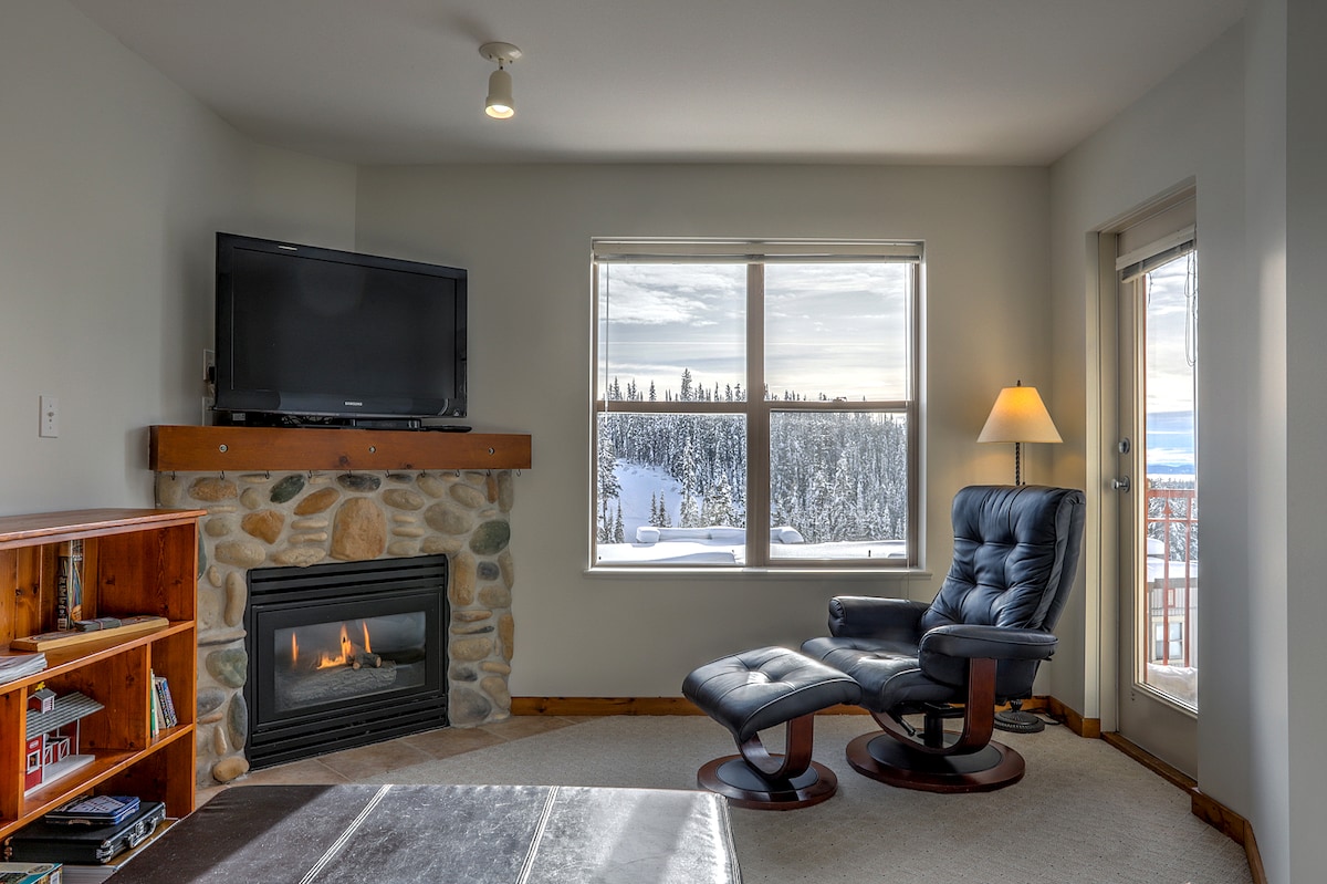 Igumbi lokulala elifudumeleyo nelinomtsalane elinegumbi lokulala elinye elikumgangatho ophezulu kwi-ski in/ski out condo enebhedi enkulu. Ilungele iholide yabantu abathandanayo ukuze benze iinkumbulo zasebusika ezimangalisayo. Ukuhamba nje imizuzu emithathu ukuya kwichibi lokutyibiliza emkhenkceni, ukukhwela ityhubhu, i-nordic/snowshoe/ibhayisekile enamafutha, kunye nemizuzu emihlanu ukuya kwilali yeSilver Star. Iingubo kunye neekomityi zabahambi zeplastiki zinikezelwa ukuze zisebenzise ibhafu eshushu esetyenziswa nangabanye abantu eneendawo ezintle eziluhlaza neenkwenkwezi zasebusuku. I-boot/isigcina-ntloko/i-mitt dryer enikezelweyo ukuze uhlale kamnandi kangangoko kunokwenzeka.