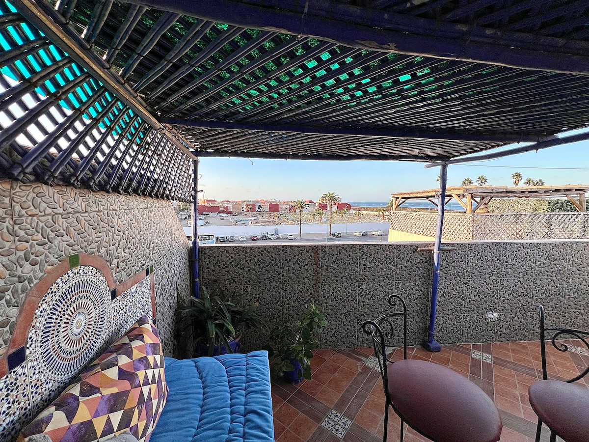Iflethi okanye indlu ekwicomplex ephambi kolwandle ebonakala kakuhle kumagumbi okulala nakwigumbi lokuhlala . IMedina, iSouks, ulwandle neSixeko sasePortugal zikufuphi ngeenyawo (imizuzu eyi-10). Khawube nombono wokonwabela ukuphuma nokutshona kwelanga kumagumbi okulala kunye nolwandle njengemvelaphi yothando. Zivumele uthandwe ngumlingo wamaza kunye nomoya ozolileyo wamaxesha axabisekileyo abantu ababini okanye intsapho. Le flethi ihonjiswe kakuhle ibe inazo zonke izinto.