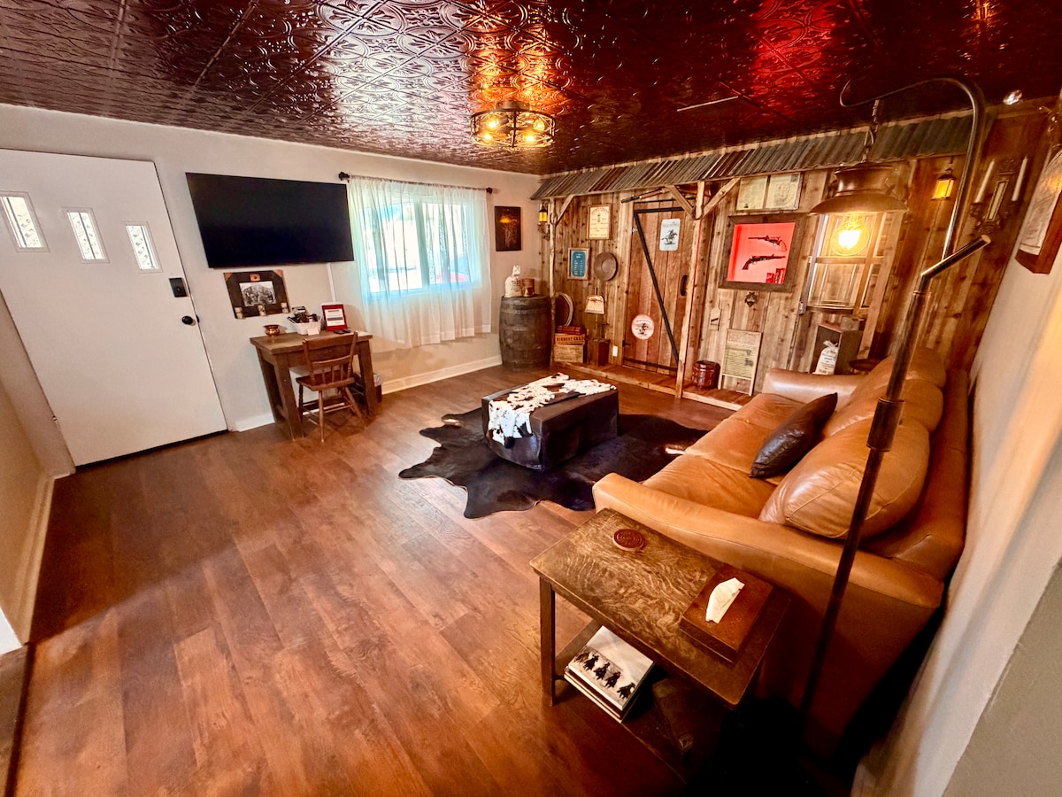 Mountain View Home Cozy, older home with peaceful mountain views—perfect for families and friends. Enjoy outdoor dining, a fenced yard for kids and pets, and amazing star gazing. Sleeps 8 with 1 king, 1 queen, 2 twins, 1 twin bunk (kids only), a full air mattress, and a full pull-out sofa. Relax on the front porch or gather in the spacious indoor living areas. A warm, welcoming retreat for making lasting memories.