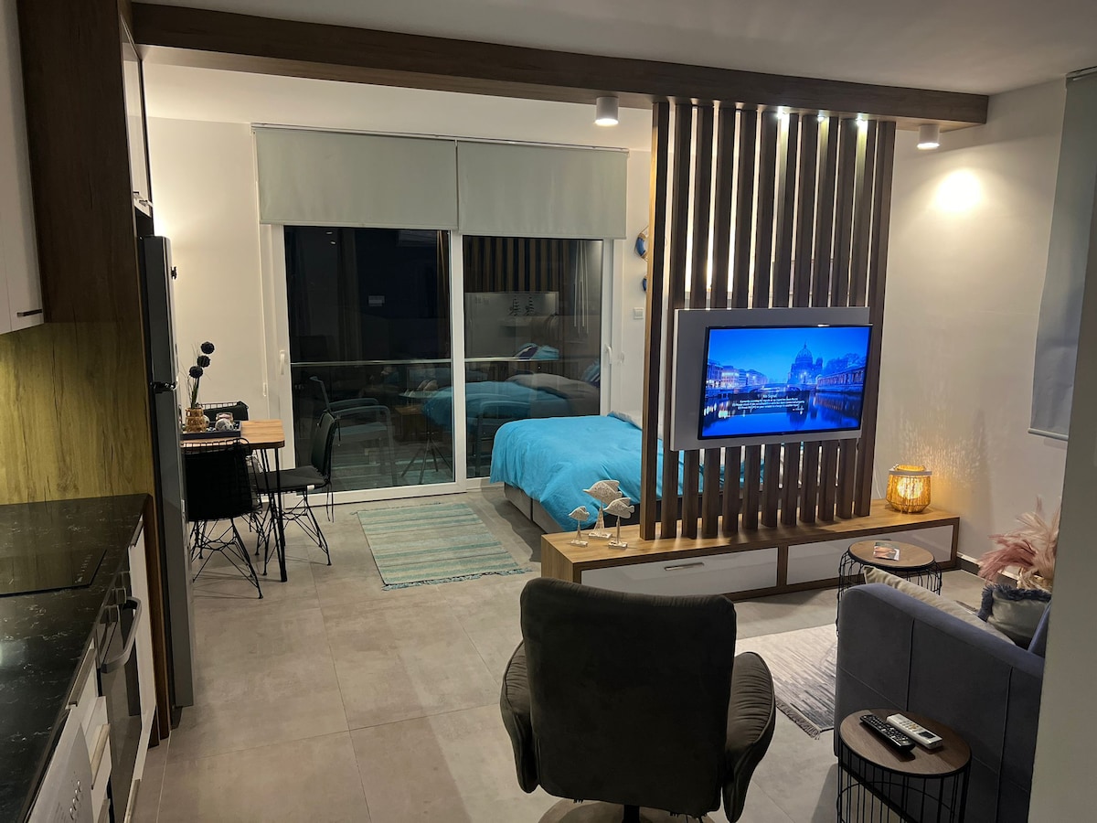 Wamkelekile kwiflethi yethu etofotofo ekwindawo ekhethekileyo elwandle! Idibanisa eyona nto itofotofo nehonjiswe kakuhle. Yonwabela ukubona ulwandle ngendlela emangalisayo usuka kwiveranda, kwigumbi lokuhlala nakwipuli engapheliyo. Le ndawo ihonjiswe kakuhle ikwenza uphumle uze uphumle. Ilungele abadlali begalufa: Iklabhu yegalufa yamazwe ngamazwe "iKorineum" ikumgama wemizuzu nje eyi-5. Ulwandle olungonakaliswanga lungaphandle komnyango ibe luthembisa izinto ezinokonwatyelwa zendalo ezingalibalekiyo.
