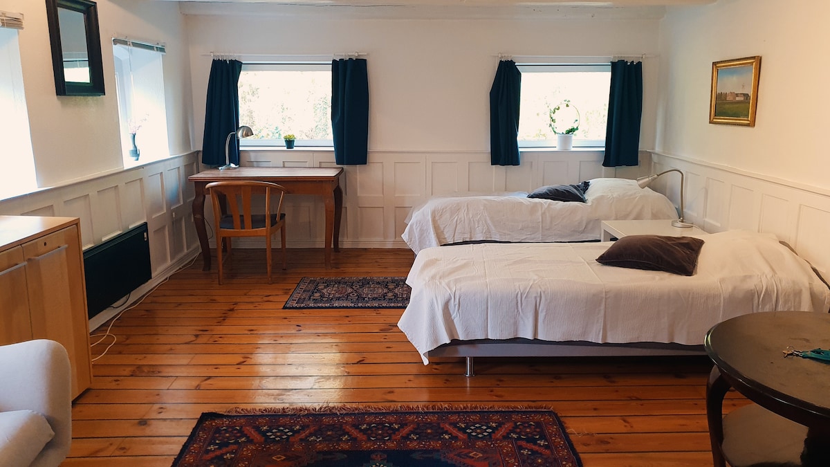 Welcome to Galleri Drømmestrøg, close to Aarhus with private parking – a truly special gem with a thatched roof and soul, where art and comfort meet! Here you’ll enjoy a charming 68 m² apartment – part of an idyllic property nestled between the village church and the old community hall, just 13 km from Aarhus and 6 km from the motorway. Stay in an art gallery! The apartment also serves as an art gallery, showcasing my own paintings.