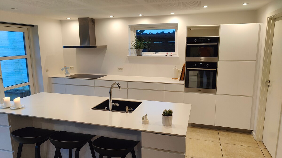 Yonwabela izinto ezihonjiswe kakuhle kule ndawo isembindini. Indawo yokungena, igumbi lokuhlala ekhitshini, igumbi lokuhlambela negumbi lokuhlambela. Kwikhitshi eliqaqambileyo kunye negumbi lokuhlala ekhitshini eliphangaleleyo wena kunye nabahlobo bakho/intsapho yakho ningenza kwaye nonwabele isidlo sangokuhlwa esimnandi. Ungaya nakwi-terrace uze wonwabele iintsuku ezimnandi nangokuhlwa. Kukho umgodi womlilo kunye ne-trampoline yemiphefumlo yobuntwana. I-1 km ukuya embindini wesixeko, apho kukho iivenkile zokutyela eziliqela kunye nokuthenga kakuhle. Amachibi aseMastrup aneendlela ezininzi kwiyadi engasemva ibe yimizuzu eyi-10 kuphela xa uhamba ngemoto usuka ehlathini laseRold.
