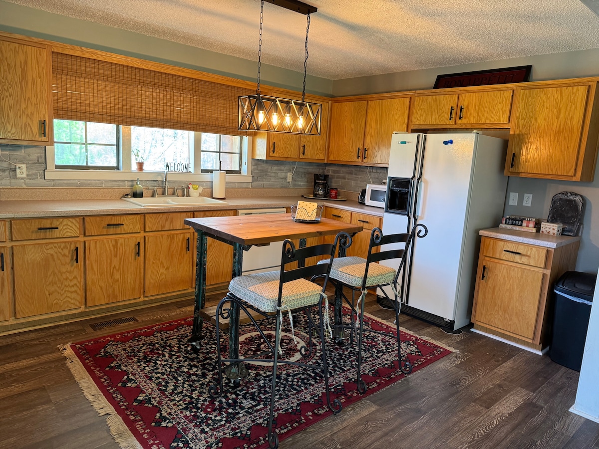 Ngaba ukhangela uhlobo olwahlukileyo lweholide ngaphandle kolwandle kunye neentaba? Kutheni ungayiholide (okanye iholide yempela-veki) emlanjeni?!? Iimpawu zeBridge ezigqunyiweyo ziziqhenya zinika le ndlu yamaplanga enamagumbi okulala ayi-1. Phola kwiveranda, ulale emini; ngoxa abantwana behamba endleleni eya emlanjeni ukuya kwiintlanzi! Yiza nepali yakho! Kukho iivenkile zokutyela eziliqela zasekuhlaleni ezinemizuzu eyi-15 ngemoto ukusuka kwindlu yamaplanga, i-Top Hat BBQ kunye ne-El Molino Mexican Restaurant. Simizuzu eyi-15 kuphela ukusuka kwi-165.