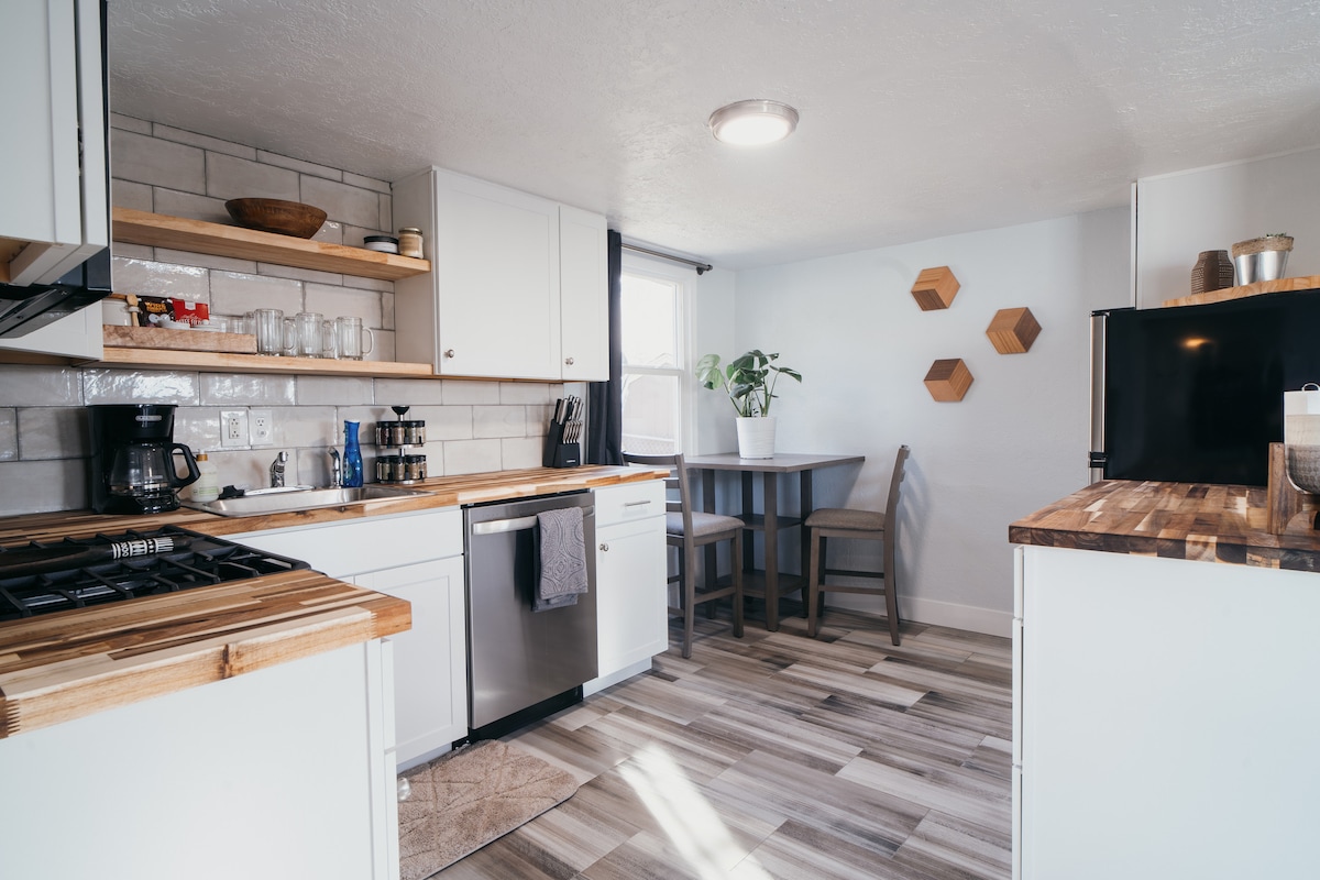 Phumla uze uphole kule ndawo izolileyo nehonjisiweyo. Embindini weOgden, idolophu ikumgama wemizuzu eyi-5, kwaye ii-resort zingaphelanga imizuzu eyi-30 ukuya kweyi-45. Ihleli kwindawo ethe cwaka nekhuselekileyo, le ndawo inazo zonke izinto ozidingayo kwindawo oza kuhlala kuyo; inekhitshi elincinci, umatshini wokuhlamba impahla/umatshini wokomisa impahla, igumbi lokuhlambela, ibhedi enkulu, itafile yokutyela, indawo yokuhlala, idesika yomsebenzi, IWIFI, Intambo, nendawo yokupaka yasimahla kufutshane nomnyango wokungena wabucala. Akukho mali yokucoca! Kwakhona, iindwendwe ziyakwazi ukungena kwindawo ephandle yezilwanyana zasekhaya ezihambahambayo ezifuna ukuzolula.