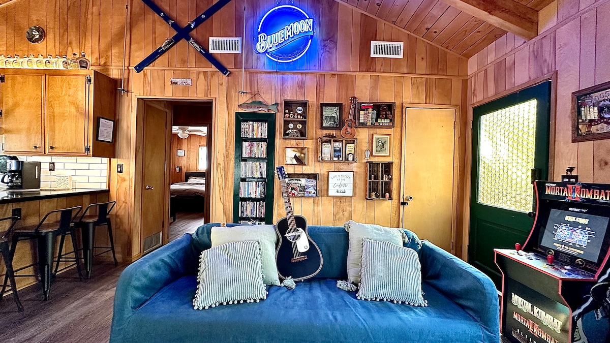 Cozy home, endless possibilities: welcome to the Moonlight Getaway! Escape from from the city and enjoy this quintessential cabin thoughtfully designed in mid-century modern aesthetic - perfect for a romantic getaway or a solo recharge. Highlights: + walk 2 blocks to the Alpine Zoo + relax in the private spa beneath string lights or starry skies + sip something warm at the outdoor gas fire pit + enjoy a cozy wood fire with internet TV options