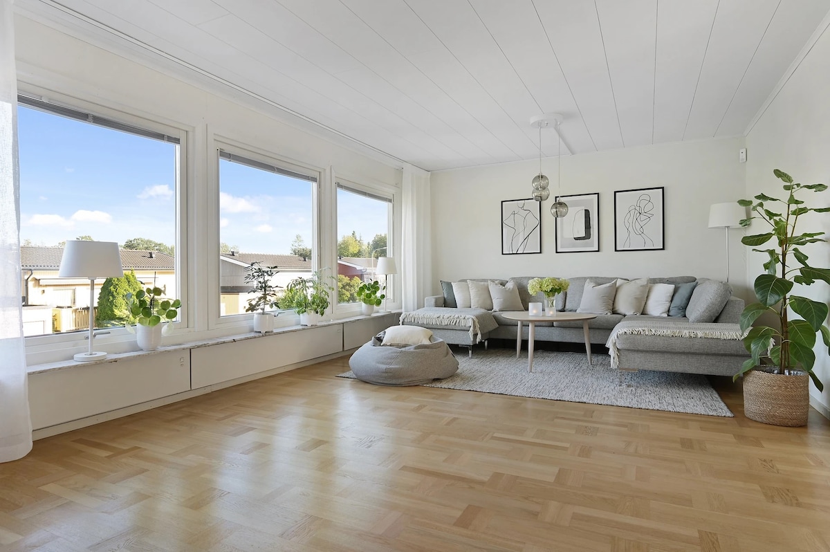 Glöm alla vardagliga bekymmer i detta rymliga och fridfulla boende. Discover the charm of medieval Sigtuna - your dream getaway awaits! Enjoy this spacious living of 150 m2 just a short stroll from the city center overlooking the peaceful lake of Mälaren. Enjoy serene views of the lake right outside your door. Swim, boat or just take in the peaceful atmosphere that surrounds you. Endless outdoor adventures Swimming - beach 300 m from the house. Also a small beach suitable for small children.