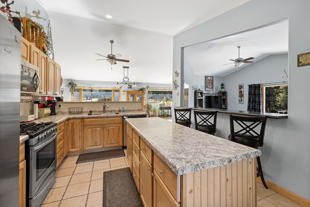 Ibekwe lula kangangeemayile eziyi-2 kuphela ngaphandle kweDeadwood enembali, iimayile eziyi-11 ngaphandle kweSturgis edumileyo, neemayile eziyi-8 ukusuka kwiTerry Peak ski lodge, le ndlu yamaplanga yale mihla ihleli phakathi kweepayini kunye ne-aspen grove encinci. Iifestile ezinkulu ezibonisa iindawo zokuhlala, kwaye umgangatho otyhefayo ubonisa eyona ndawo ifanelekileyo yokuya entabeni ukuze wonwabele ikofu yakho yasekuseni phakathi kwemithi ye-oki egobileyo. Yonwabela izilwanyana zasendle ezidla ngokuya kule ndlu inoxolo ngoxa uphumle kwibhafu enamanzi ashushu entsha.